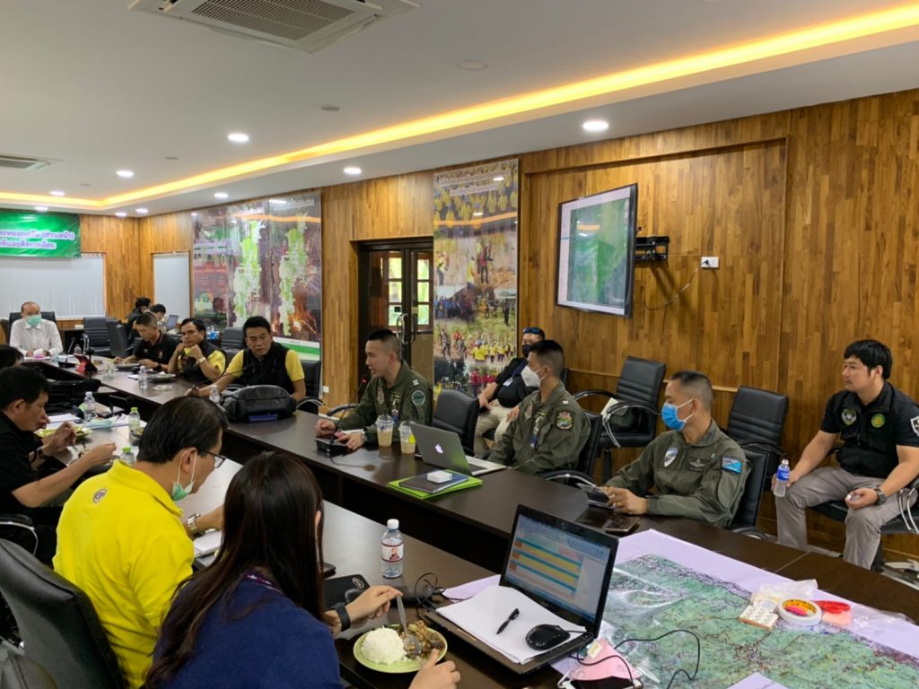 นายพงศ์บุณย์ ปองทอง รองปลัดกระทรวงทรัพยากรธรรมชาติและสิ่งแวดล้อม พร้อมด้วยนายบุญชอบ สุทธมนัสวงษ์ หัวหน้าผู้ตรวจราชการกระทรวงทรัพยากรธรรมชาติและสิ่งแวดล้อม นายชีวะภาพ ชีวะธรรม ผู้อำนวยการสำนักป้องกันรักษาป่าและควบคุมไฟป่า นายกมล นวลใย ผู้อำนวยการสำนักจัดการทรัพยากรป่าไม้ที่ 1 เชียงใหม่ และเจ้าหน้าที่ที่เกี่ยวข้องจากกรมป่าไม้ กรมอุทยานแห่งชาติสัตว์ป่าและพันธุ์พืช วางแผนปฏิบัติการทางอากาศร่วมกับเจ้าหน้าที่หน่วยบิน 404 กองบิน 4 กองทัพอากาศ นักบินกองการบิน กระทรวงทรัพยากรธรรมชาติและสิ่งแวดล้อม และนักบินกองทัพบก ในการนำอากาศยานไร้คนขับขึ้นบินสำรวจสถานการณ์ไฟป่าในพื้นที่จังหวัดเชียงใหม่ เพื่อนำข้อมูลมาวางแผน วิเคราะห์สถานการณ์ ให้เจ้าหน้าที่ภาคพื้นดินเข้าระงับเหตุไฟป่า ก่อนขยายพื้นที่เป็นวงกว้าง
