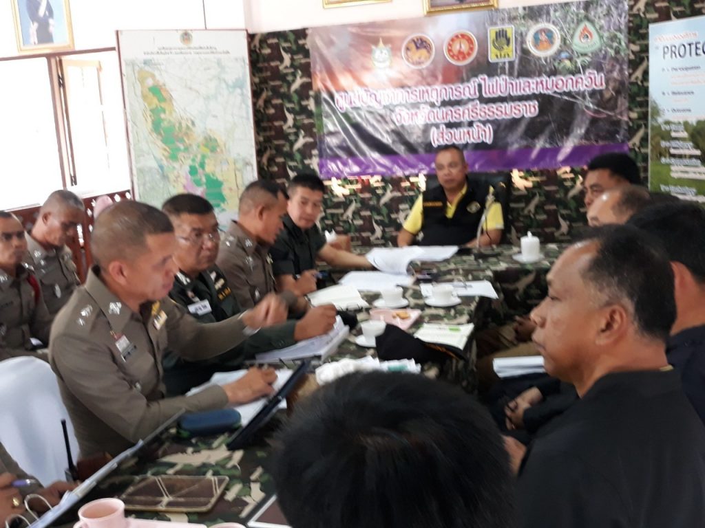 เจ้าหน้าที่ได้ประชุมเตรียมความพร้อม ในการกำหนดจุดเป้าหมายที่จะเข้าดำเนินการตรวจยึดจับกุมผู้กระทำผิดกฎหมายว่าด้วยการป่าไม้ ในพื้นที่ป่าสงวนแห่งชาติ ท้องที่จังหวัดนครศรีธรรมราช พร้อมจัดตั้งศูนย์ประสานงานชุดเฉพาะกิจร่วมในการบังคับใช้กฎหมายกับนายทุนและผู้บุกรุกป่าพรุ ท้องที่จังหวัดนครศรีธรรมราช และจังหวัดสงขลา โดยมีนายจิระศักดิ์ ชูความดี รองอธิบดีกรมป่าไม้ เป็นหัวหน้าศูนย์ฯ ซึ่งจากการขึ้นบินสำรวจด้วยเฮลิคอปเตอร์กองการบิน กระทรวงทรัพยากรธรรมชาติและสิ่งแวดล้อม เจ้าหน้าที่พบเป้าหมายที่เข้าข่ายบุกรุกจำนวน 43 จุด ซึ่งจะนำข้อมูลที่ได้มาคัดกรองตรวจสอบ ก่อนที่จะประชุมวางแผนดำเนินการ และลงพื้นที่บังคับใช้กฎหมายต่อนายทุนและผู้บุกรุกรายใหม่ต่อไป