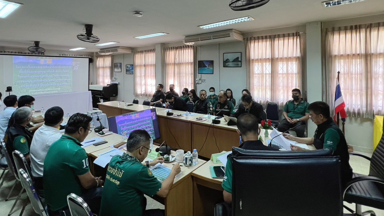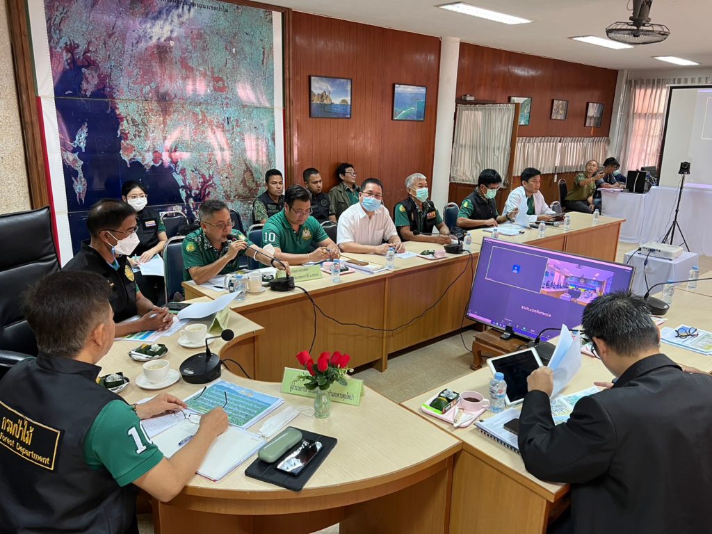 วันที่ 27 มกราคม 2566 นายอุธร สุทธิมิตร ผู้อำนวยการสำนักป้องกันรักษาป่าและควบคุมไฟป่า เป็นประธานการประชุม “ติดตามความก้าวหน้าผลการดำเนินงานกิจกรรมโครงการรื้อถอนทำลายต้นปาล์มน้ำมันออกจากพื้นที่ที่หมดอายุการอนุญาตให้เข้าทำประโยชน์ในเขตป่าสงวนแห่งชาติและไม่มีการต่ออายุการขออนุญาตเข้าทำประโยชน์ในเขตป่าสงวนแห่งชาติ” ณ ห้องประชุมสำนักจัดการทรัพยากรป่าไม้ที่ 12 สาขากระบี่ เพื่อพูดคุยเกี่ยวกับแนวทางการดำเนินการรื้อถอนทำลายต้นปาล์มน้ำมันออกจากพื้นที่ การปลูกไม้ใช้สอยเพื่อฟื้นฟูสภาพป่าตามหลักวิชาการ ตลอดจนการควบคุมพื้นที่ดูแลป้องกันรักษาป่าที่ปลูกฟื้นฟูสภาพบำไม่ให้มีการกลับเข้ามาบุกรุกทำประโยชน์ซ้ำในเขตป่าสงวนแห่งชาติที่ดำเนินการปลูกฟื้นฟูสภาพป่าไปแล้ว โดยมีสำนักแผนงานและสารสนเทศ สำนักส่งเสริมการปลูกป่า สำนักจัดการทรัพยากรป่าไม้ที่ 12 สาขากระบี่ และศูนย์ป้องกันและปราบปรามที่ 4 (ภาคใต้) เข้าร่วมการประชุม พร้อมทั้งลงพื้นที่ตรวจเยี่ยมศูนย์ป้องกันและปราบปรามที่ 4 (ภาคใต้) เพื่อติดตามการดำเนินงานด้านการป้องกันและปราบปราม รับทราบปัญหาอุปสรรค และเสนอแนะแนวทางการแก้ไขปัญหา รวมถึงให้กำลังใจเจ้าหน้าที่ในการปฏิบัติงาน