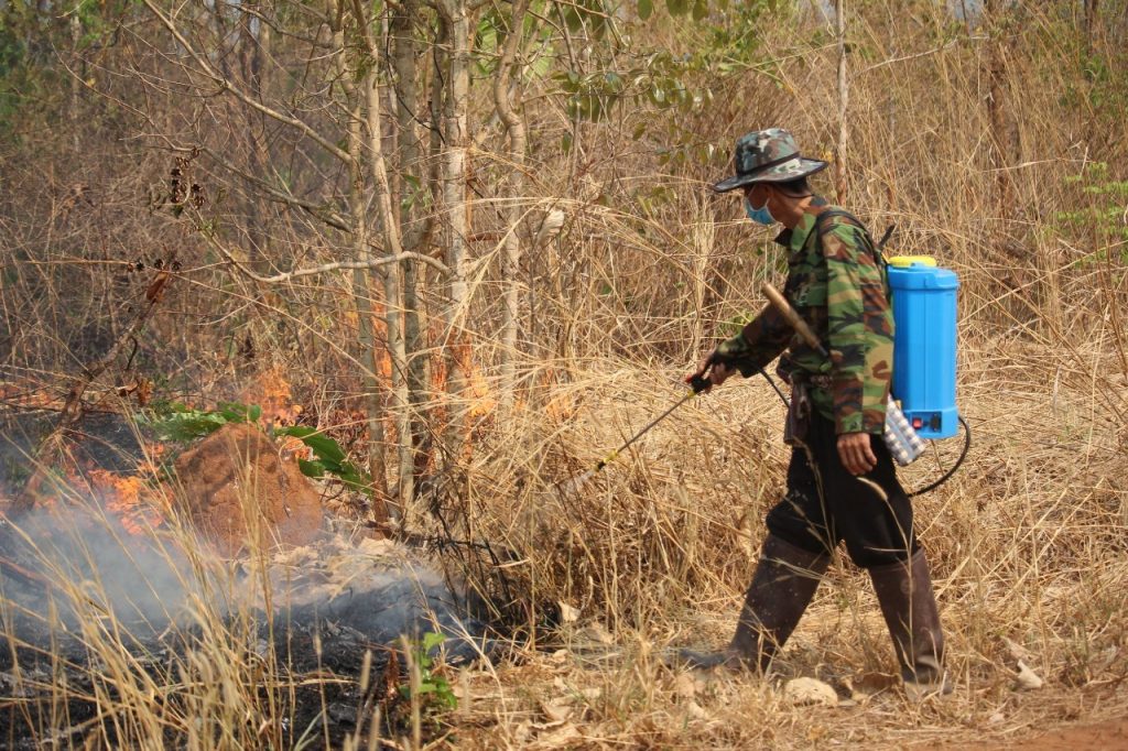 เจ้าหน้าที่ได้ร่วมกับผู้นำชุมชน ชาวบ้าน เข้าทำแนวกันไฟเพื่อไม่ให้เปลวเพลิงลุกลามเข้าพื้นที่ทำกินของชาวบ้าน บ้านเรือนของประชาชน และวัดที่อยู่ใกล้พื้นที่ แต่เนื่องจากบางจุดมีใบไม้ทับถมเป็นจำนวนมาก จึงทำให้ไฟโหมอย่างรุนแรงจนข้ามแนวกันไฟ เจ้าหน้าที่จึงได้ช่วยกันขยายแนวให้ใหญ่ขึ้น เพื่อไม่ให้ไฟข้ามแนวได้ เบื้องต้นทราบว่าไฟได้ลุกลามมาจากพื้นที่ทำกินที่อยู่อีกฝั่งเขา ตรวจสอบพบพื้นที่เสียหายกว่า 100 ไร่