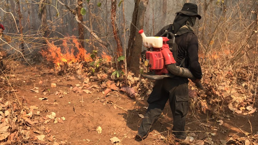 นายชีวะภาพ ชีวะธรรม ผู้อำนวยการสำนักป้องกันรักษาป่าและควบคุมไฟป่า กรมป่าไม้ นำกำลังเจ้าหน้าที่ชุดพยัคฆ์ไพร เจ้าหน้าที่เหยี่ยวไฟ เจ้าหน้าที่หน่วยป้องกันรักษาป่า และชาวบ้านม่วงค้อง เข้าควบคุมไฟป่าพื้นที่ตำบลเชียงดาว อำเภอเชียงดาว จังหวัดเชียงใหม่ หลังได้รับแจ้งจากชาวบ้านว่าพบไฟป่าโหมอย่างรุนแรง จนขยายเป็นวงกว้างอย่างรวดเร็ว