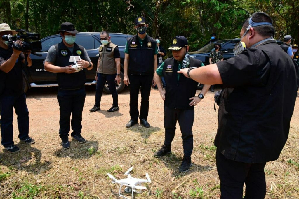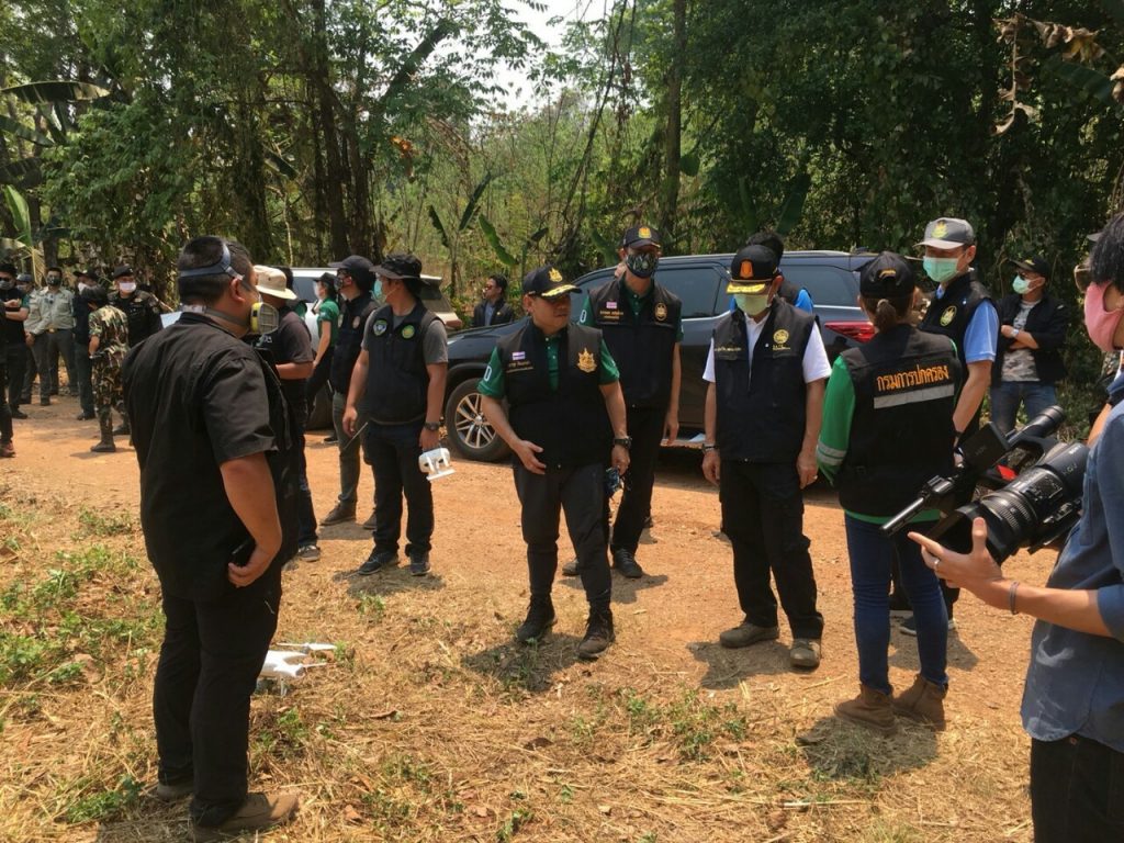 สำหรับชุดปฏิบัติการตรวจสอบไฟป่าทางอากาศ ซึ่งขณะนี้มี 3 ชุด ปฏิบัติงานตลอด 24 ชั่วโมง โดยได้นำยุทโธปกรณ์ที่กรมป่าไม้นำมาใช้ในปฏิบัติการดับไฟป่าประกอบด้วย ยานพาหนะประสิทธิภาพสูง UTV , ATV ซึ่งสามารถเข้าถึงในจุดที่ยากลำบากที่รถยนต์ไม่สามารถเข้าพื้นที่ได้ และนำอากาศยานไร้คนขับ หรือโดรน ที่มีกล้องตรวจจับความร้อนเข้ามาช่วยในการตรวจหาแนวไฟ และสามารถประยุกต์ใช้ในการตรวจหาผู้กระทำความผิดที่เข้าไปจุดไฟในพื้นที่ป่าได้อีกด้วย โดยชุดปฏิบัติการจะทำงานร่วมกับเจ้าหน้าที่ทหารจากหน่วยบิน 404 กองบิน 4 กองทัพอากาศ ที่นำอากาศยานไร้คนขับประสิทธิภาพสูง (UAV) เข้ามาตรวจสอบสถานการณ์ไฟป่า