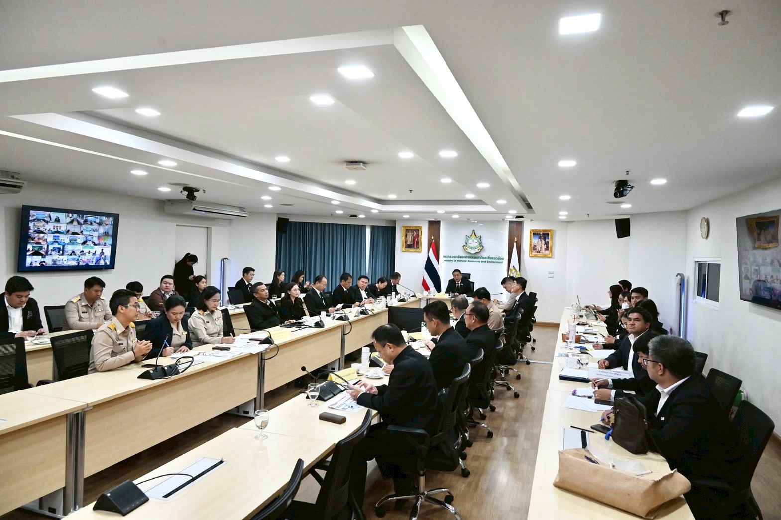 ผู้บริหารกระทรวง ทส. และผู้แทนหน่วยงานที่เกี่ยวข้อง ณ ห้องประชุมชั้น 17 กระทรวงทรัพยากรธรรมชาติและสิ่งแวดล้อม