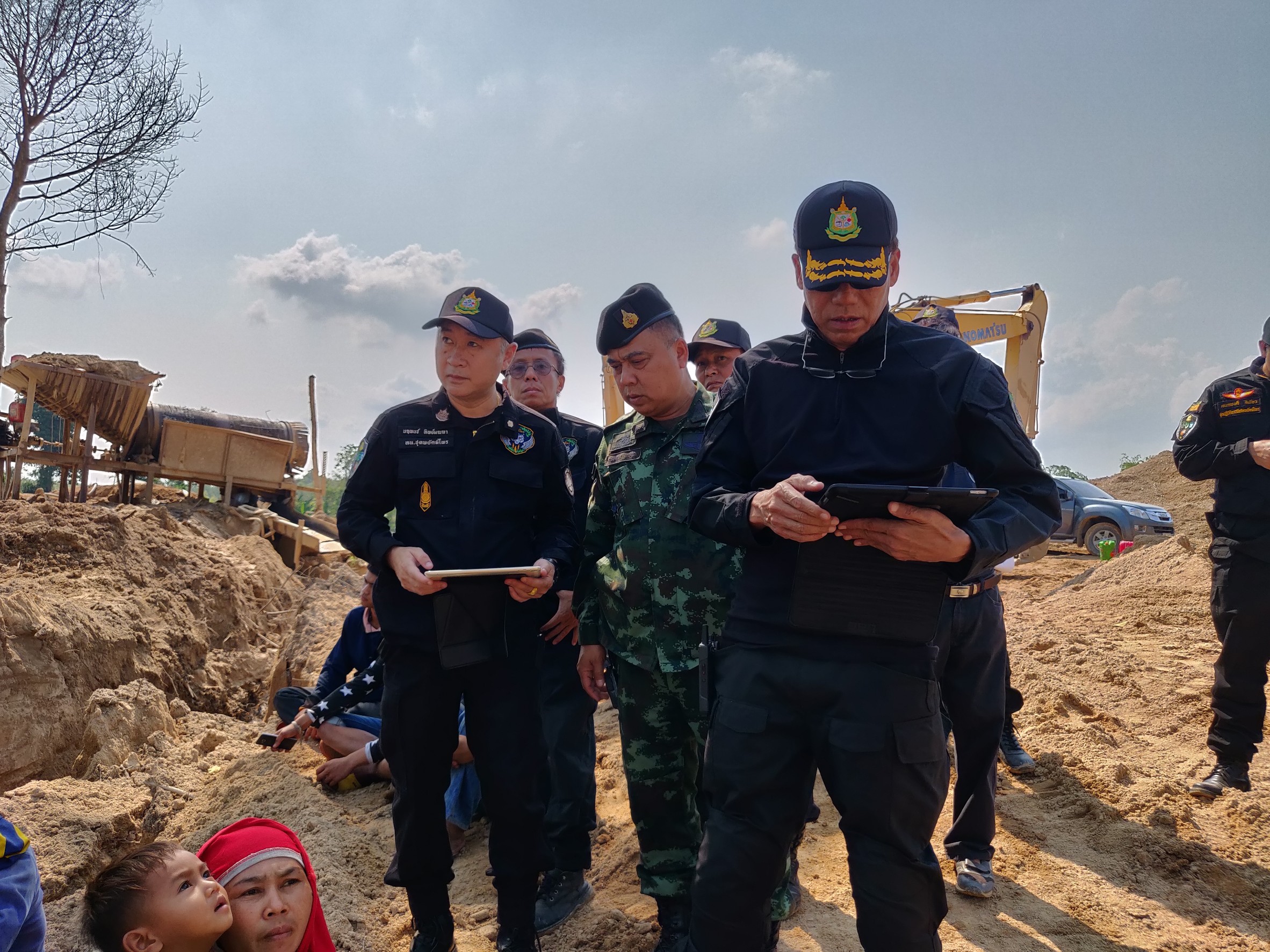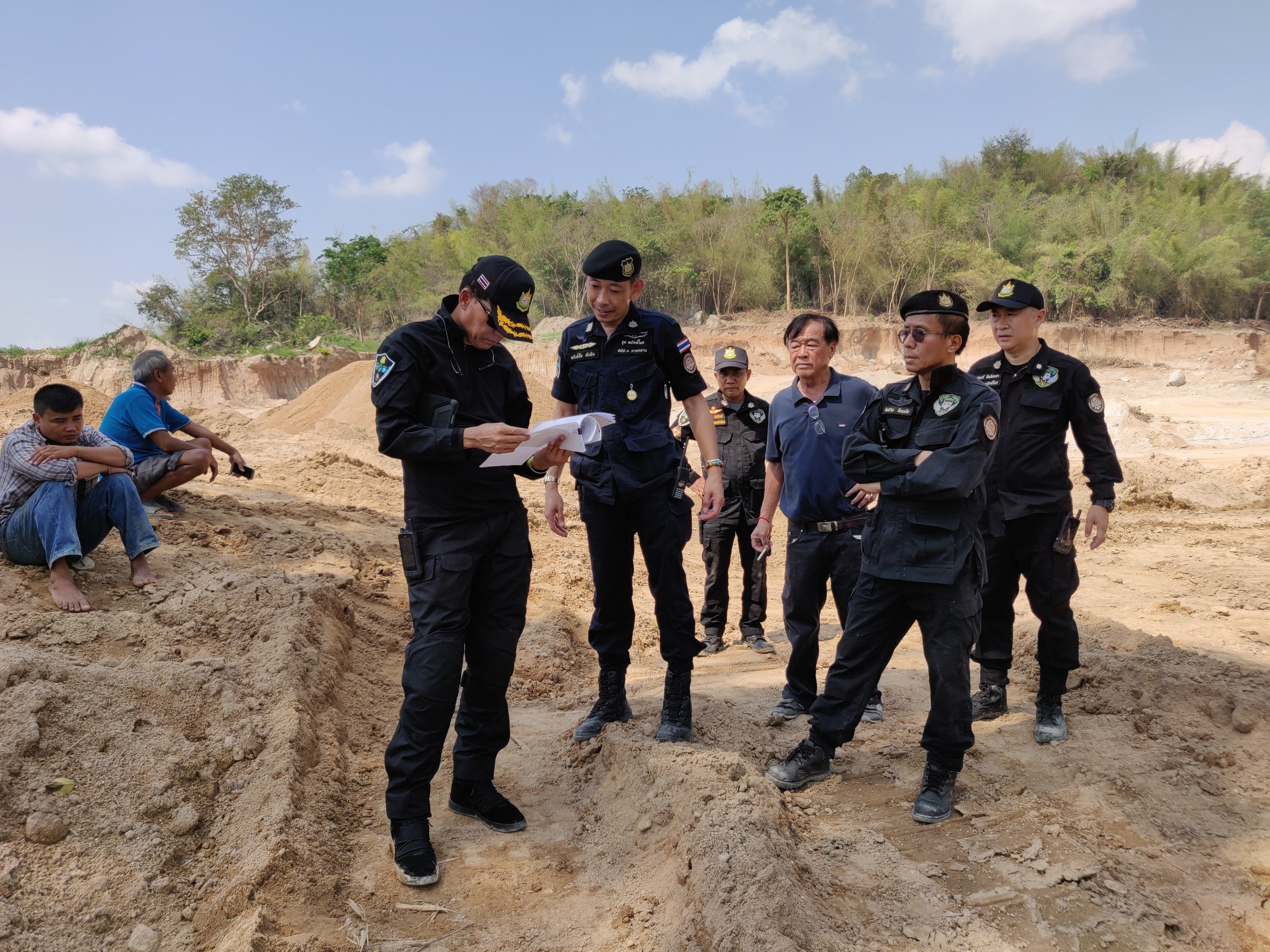 เจ้าหน้าที่แบ่งกำลังออกเป็น 2 ชุด ปูพรมเข้าตรวจสอบรอบพื้นที่ พบมีการนำเครื่องจักรและรถบรรทุกหนักเข้าไปขุดพื้นที่ป่า จนเกิดความเสียหายเป็นบริเวณกว้าง โดยนายทุนให้ลูกจ้างตักดินและทรายใส่รถบรรทุกพ่วงคาตา เจ้าหน้าที่จึงถ่ายคลิปไว้เป็นหลักฐาน พร้อมสั่งให้หยุดทำงาน ก่อนจะยึดรถแบกโฮ 5 คัน รถบรรทุกพ่วง 1 คัน และเครื่องล้างทรายจำนวน 1 เครื่อง ไว้เพื่อเป็นหลักฐาน และให้เจ้าหน้าที่จับพิกัดพื้นที่ เพื่อดำเนินคดีตามขั้นตอนกฎหมาย