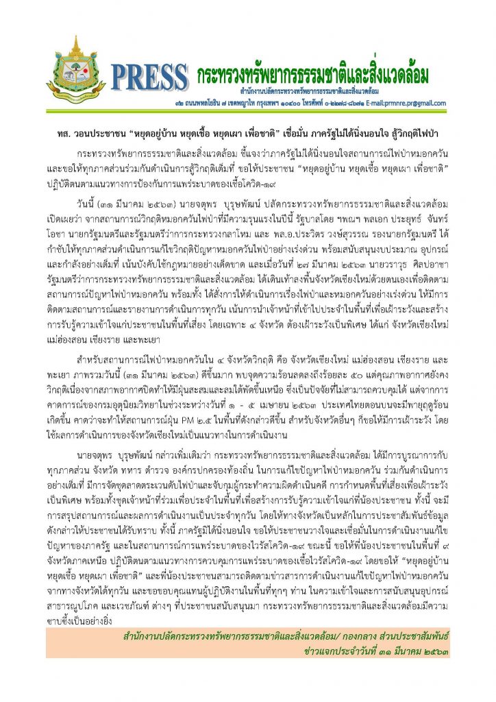 ทส. วอนประชาชน “หยุดอยู่บ้าน หยุดเชื้อ หยุดเผา เพื่อชาติ”