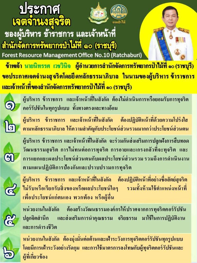 ประกาศเจตจำนงสุจริตสำนักจัดการทรัพยากรป่าไม้ที่ 10 (ราชบุรี)