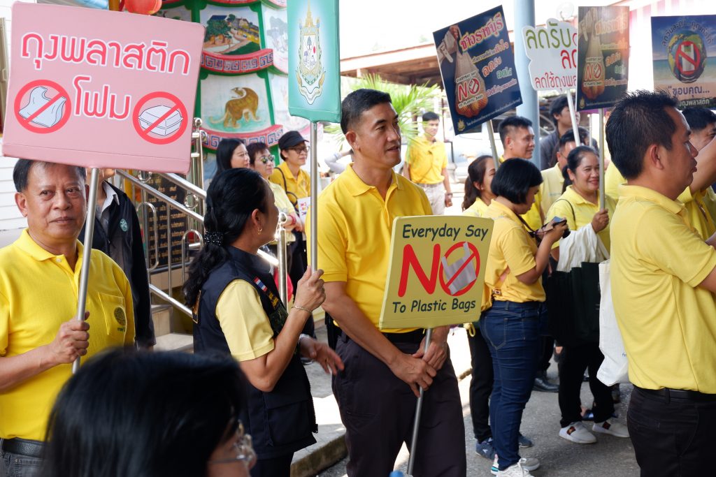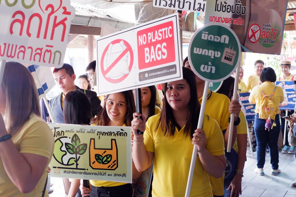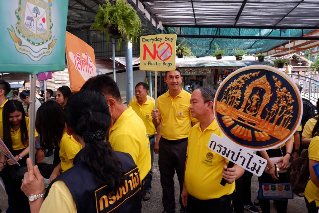 นายสมชาย เปรมพาณิชย์นุกูล ผู้อำนวยการสำนักจัดการทรัพยากรป่าไม้ที่ 10 (ราชบุรี) ผู้อำนวยการส่วนอำนวยการ ผู้อำนวยการส่วนวิชาการและกฎหมาย พร้อมเจ้าหน้าที่สังกัดสำนักจัดการทรัพยากรป่าไม้ที่ 10 (ราชบุรี) ร่วมเดินรณงค์ในกิจกรรม “เลิกรับ เลิกให้ เลิกใช้ถุงพลาสติกและโฟม” นำโดย นายวราวุธ ศิลปอาชา รัฐมนตรีว่าการกระทรวงทรัพยากรธรรมชาติและสิ่งแวดล้อม และนายอรรถพล เจริญชันษา อธิบดีกรมป่าไม้ นำเดินรณรงค์ ณ ตลาดน้ำเหล่าตั๊กลัก อ.ดำเนินสะดวก จ.ราชบุรี เพื่อเชิญชวนให้พี่น้องประชาชนที่มาจับจ่ายใช้สอย ช่วยกันพกถุงผ้าปฏิเสธถุงพลาสติก ร่วมกันลดปัญหาขยะพลาสติก และโฟม