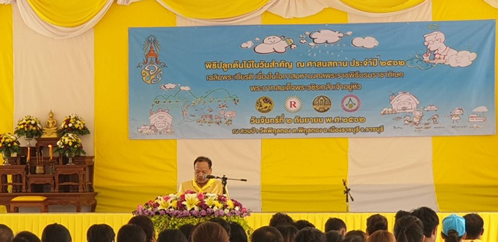 เมื่อวันที่ 2 กันยายน 2562 นายนริศ อาจธัญกรณ์ ผู้อำนวยการส่วนส่งเสริมการปลูกป่า นายศรศักดิ์ วิริยะเอกกุล ผู้อำนวยการส่วนอำนวยการและนายเสรี รัตนเย็นใจ นักวิชาการป่าไม้ชำนาญการพิเศษ พร้อมเจ้าหน้าที่ สำนักจัดการทรัพยากรป่าไม้ที่ 10 (ราชบุรี) เข้าร่วม โครงการ เพื่อบ้านเราประจำปี 2562 กลุ่มศาสนา ประเพณี วัฒนธรรมกิจกรรมโครงการรณรงค์ปลูกต้นไม้ในวันสำคัญ ณ ศาสนสถาน ประจำปี 2562 เฉลิมพระเกียรติเนื่องในโอกาสมหามงคลพระราชพิธีบรมราชาภิเษกพระบาทสมเด็จพระวชิรเกล้าเจ้าอยู่หัว ภายใต้โครงการจิตอาสาพระราชทาน ตามแนวทางพระราชดำริและทำความดีด้วยหัวใจ ณ สวนป่าวัดพิกุลทอง อ.เมืองราชบุรี จ.ราชบุรี นายรณภพ เวียงสิมมา นายอำเภอเมืองราชบุรี เป็นประธาน