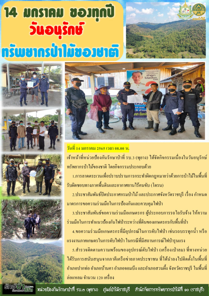 กิจกรรมเนื่องในวันอนุรักษ์ทรัพยากรป่าไม้ของชาติ วันที่ 14 มกราคม 2565 กิจกรรมเนื่องในวันอนุรักษ์ทรัพยากรป่าไม้ของชาติ วันที่14 มกราคม 2565 เพื่อเป็นการสร้างจิตสำนึกปลูกฝังแก่เยาวชนและประชาชนให้ตระหนักถึงการอนุรักษ์ทรัพยากรป่าไม้ เพือประโยชน์อย่างยั่งยืน