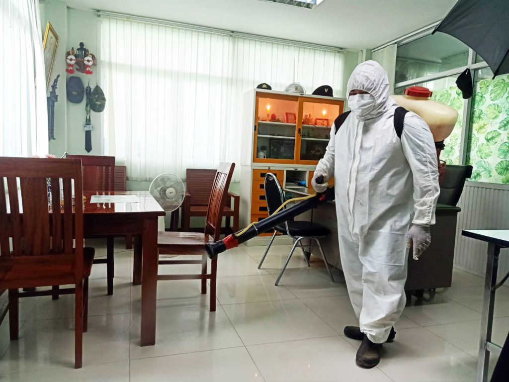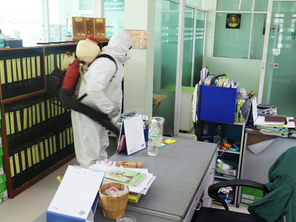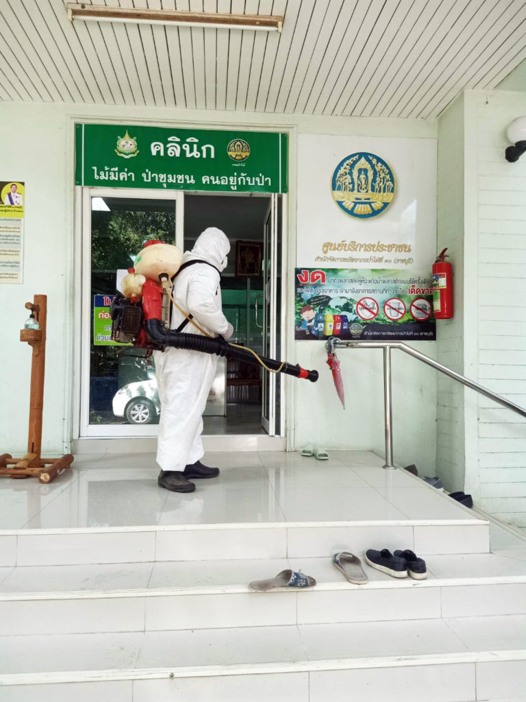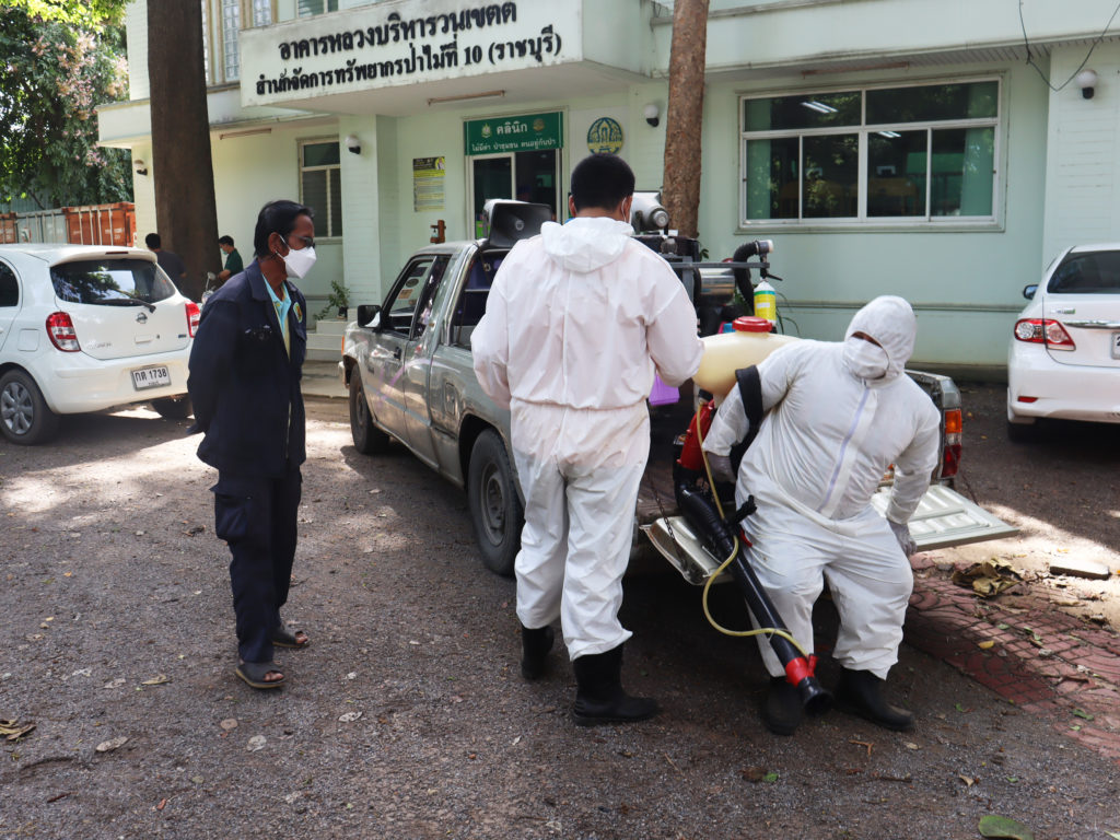 วันพุธที่ 25 สิงหาคม 2564 เวลา 10:00 น.สำนักจัดการทรัพยากรป่าไม้ที่ 10 (ราชบุรี) ขอความอนุเคราะห์จากเทศบาลเมืองบ้านโป่ง ดำเนินการฉีดพ่นสารเคมีแอลกอฮอล์ฆ่าเชื้อไวรัสCOVID-19 บริเวณอาคารสำนักงานและบริเวณโดยรอบ เพื่อเป็นการฆ่าเชื้อโรคและป้องกันการแพร่ระบาดโรคติดเชื้อไวรัส COVID-19