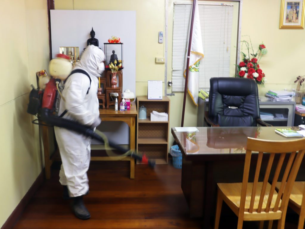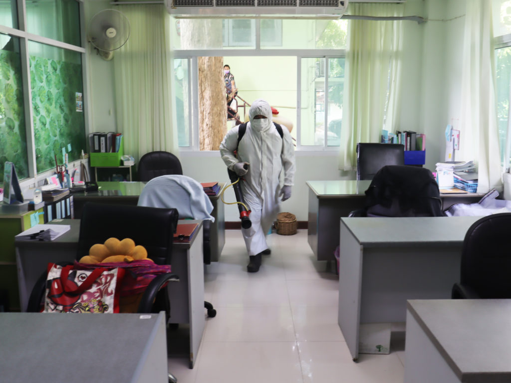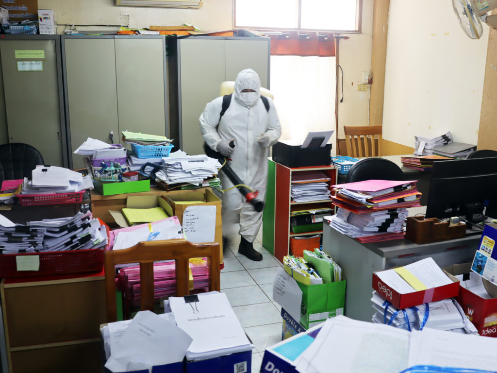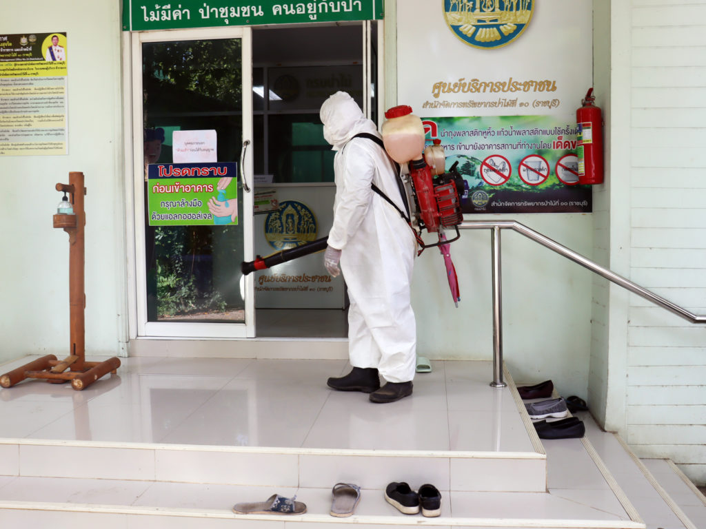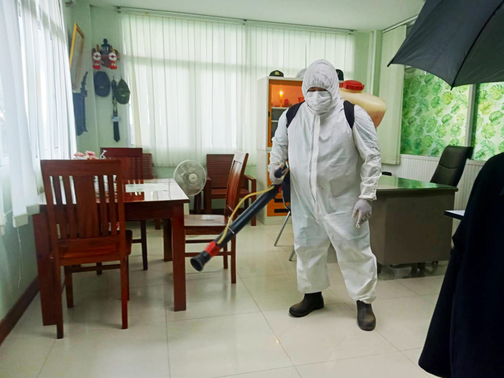 วันพุธที่ 25 สิงหาคม 2564 เวลา 10:00 น.สำนักจัดการทรัพยากรป่าไม้ที่ 10 (ราชบุรี) ขอความอนุเคราะห์จากเทศบาลเมืองบ้านโป่ง ดำเนินการฉีดพ่นสารเคมีแอลกอฮอล์ฆ่าเชื้อไวรัสCOVID-19 บริเวณอาคารสำนักงานและบริเวณโดยรอบ เพื่อเป็นการฆ่าเชื้อโรคและป้องกันการแพร่ระบาดโรคติดเชื้อไวรัส COVID-19
