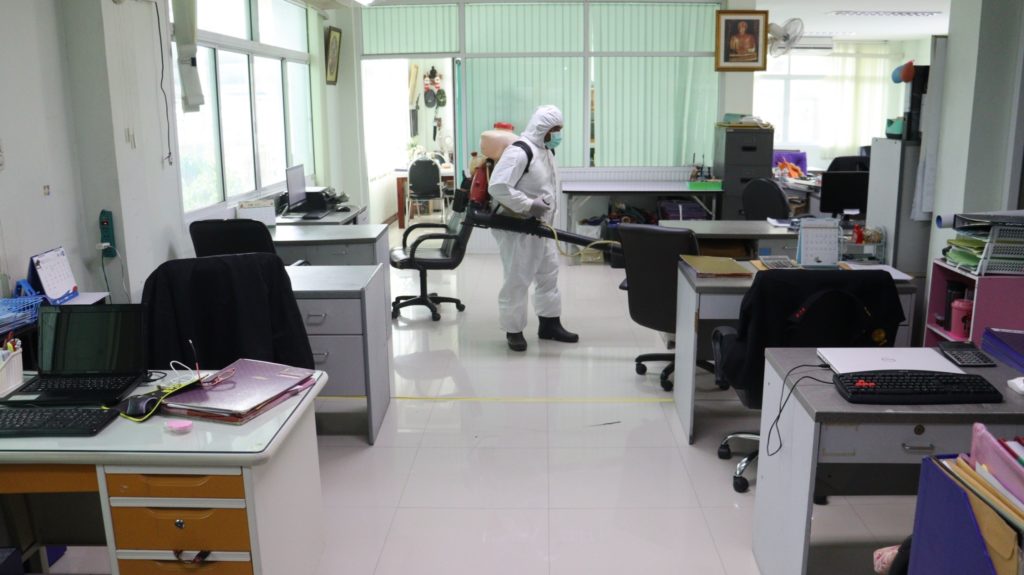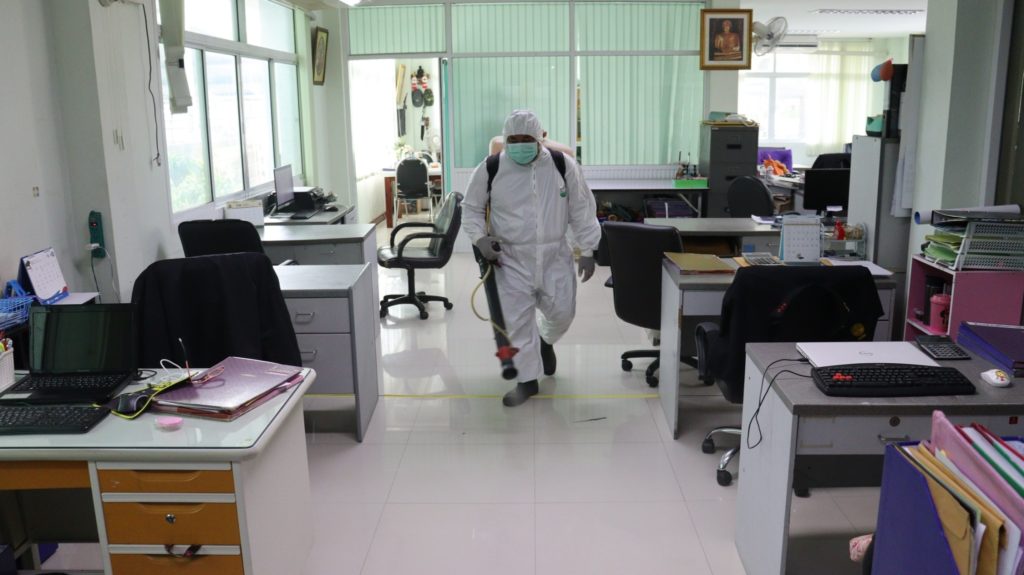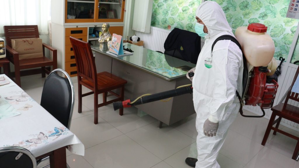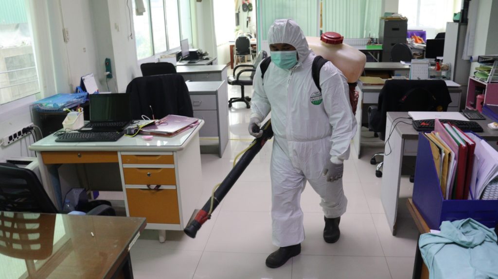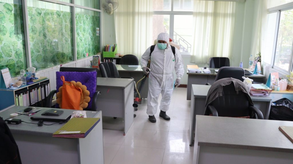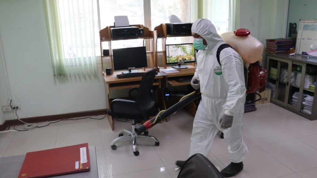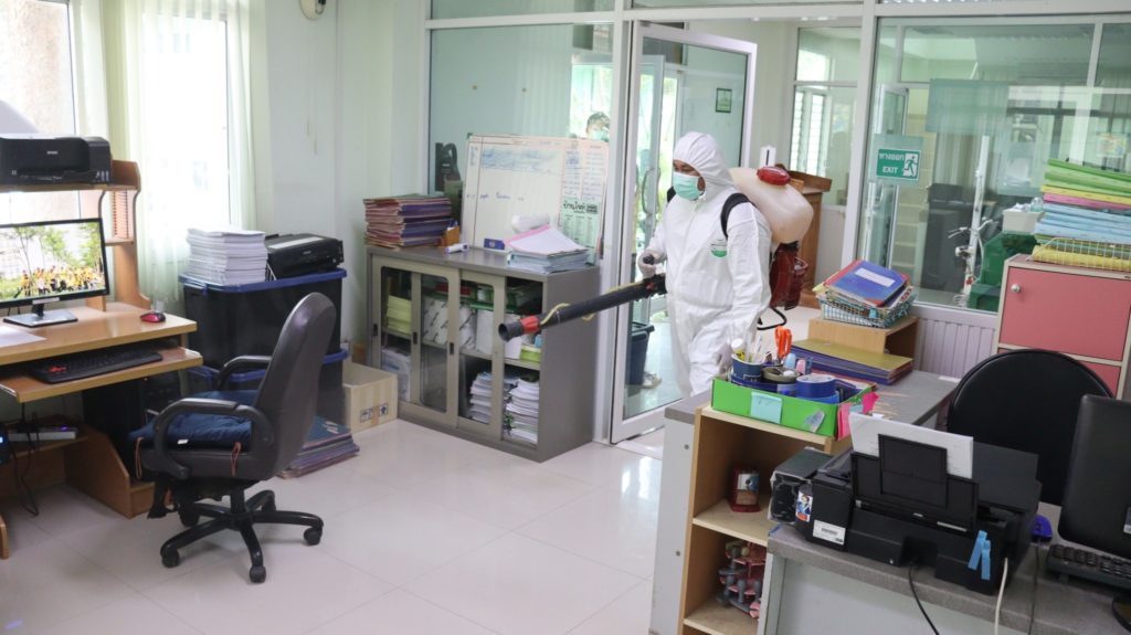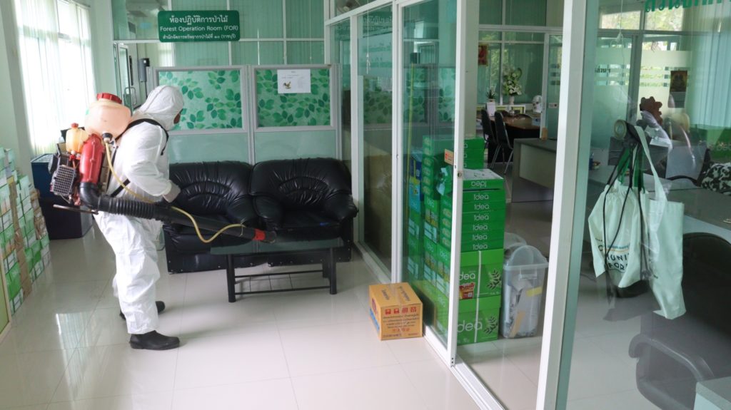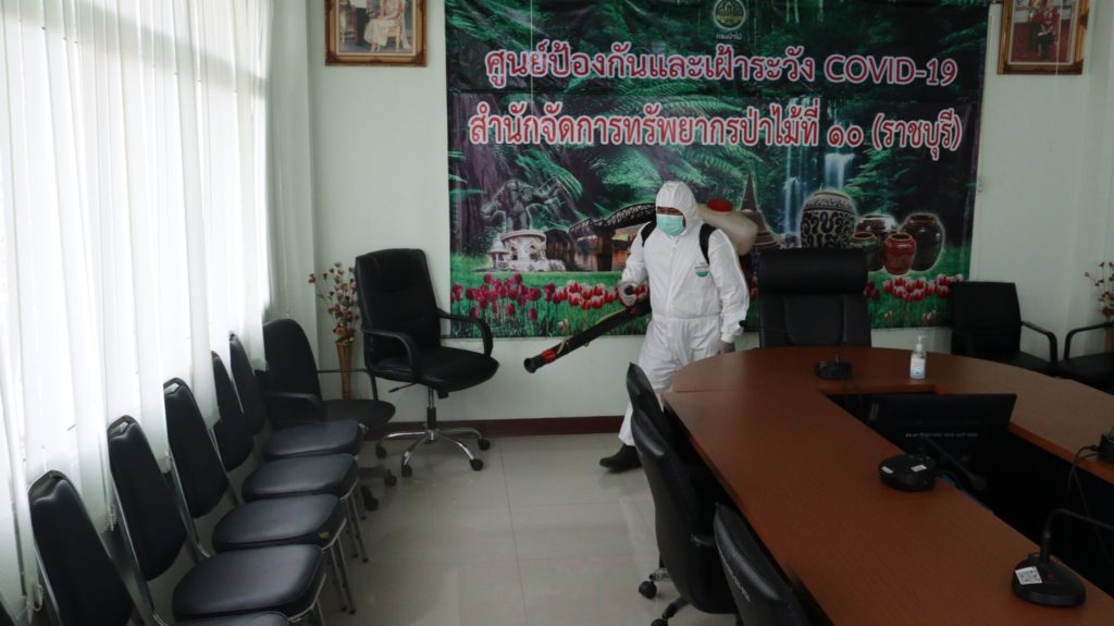 วันพฤหัสบดีที่ 10 กุมภาพันธ์ 2565 เวลา 11:00 น.สำนักจัดการทรัพยากรป่าไม้ที่ 10 (ราชบุรี)ขอความอนุเคราะห์จากเทศบาลเมืองบ้านโป่ง ดำเนินการฉีดพ่นสารเคมีแอลกอฮอล์ฆ่าเชื้อไวรัส COVID-19 บริเวณอาคารสำนักงานและบริเวณโดยรอบเพื่อเป็นการฆ่าเชื้อโรคและป้องกันการแพร่ระบาดโรคติดเชื้อไวรัส COVID-19🦠🦠🚫