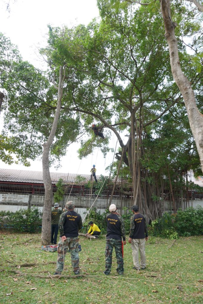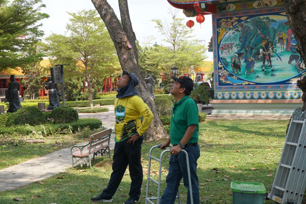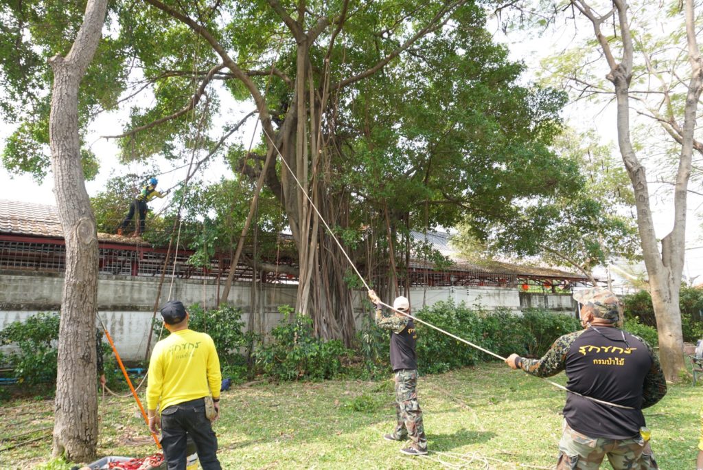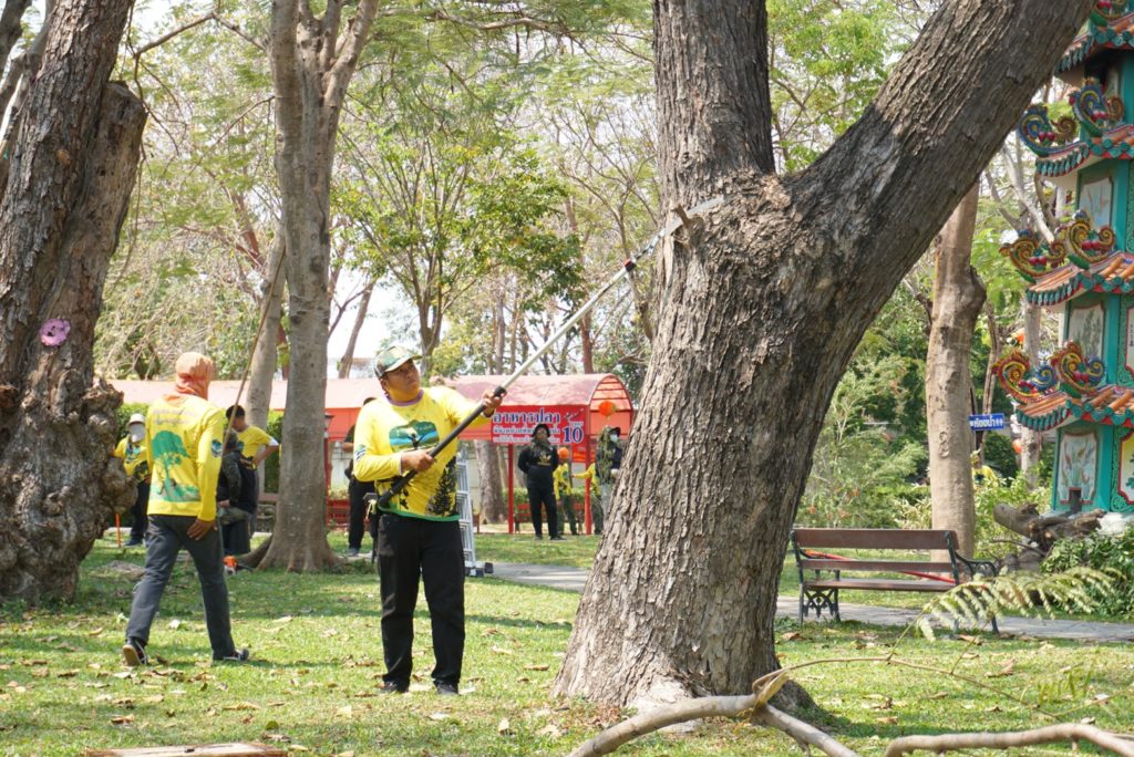 ชุดปฏิบัติการรุกขกรประจำสำนักจัดการทรัพยากรป่าไม้ที่ 10 (ราชบุรี) พร้อมด้วยเจ้าหน้าที่ศูนย์ป่าไม้สุพรรณบุรี และ ชุดปฏิบัติการรุกขกรประจำศูนย์วิจัยและพัฒนาการป่าไม้ภาคกลาง ปฏิบัติงาน ตัดแต่ง ดูแล บำรุงรักษาต้น ไม้ ณ บริเวณอุทยานมังกรสวรรค์ ศาลเจ้าพ่อหลักเมือง อำเกอเมือง จังหวัดสุพรรณบุรี จากการตรวจสอบต้นไม้ในพื้นที่อุทยานฯ พบว่ามีปัญหาแมลงศัตรูพืชเข้าทำลาย ได้แนะนำให้เจ้าหน้าที่ของอุทยานฯ เพิ่มการรดน้ำและใช้ยาฆ่าแมลงชนิดดูดชึม ราดบริเวณโคนต้น