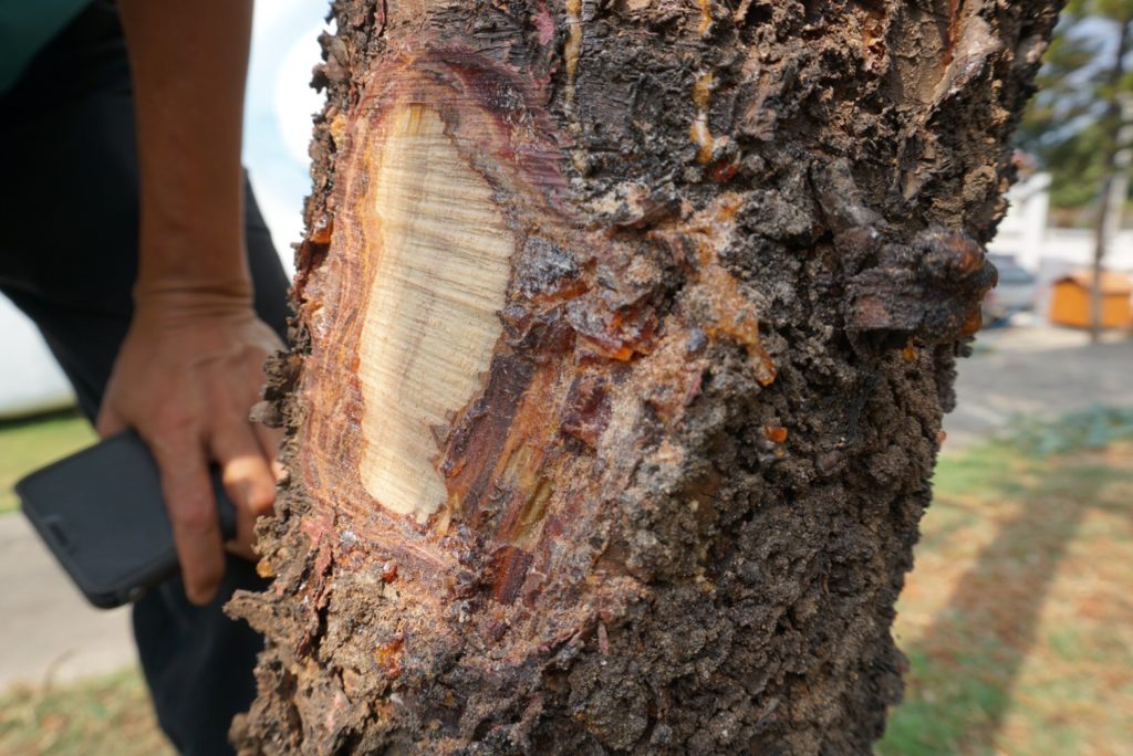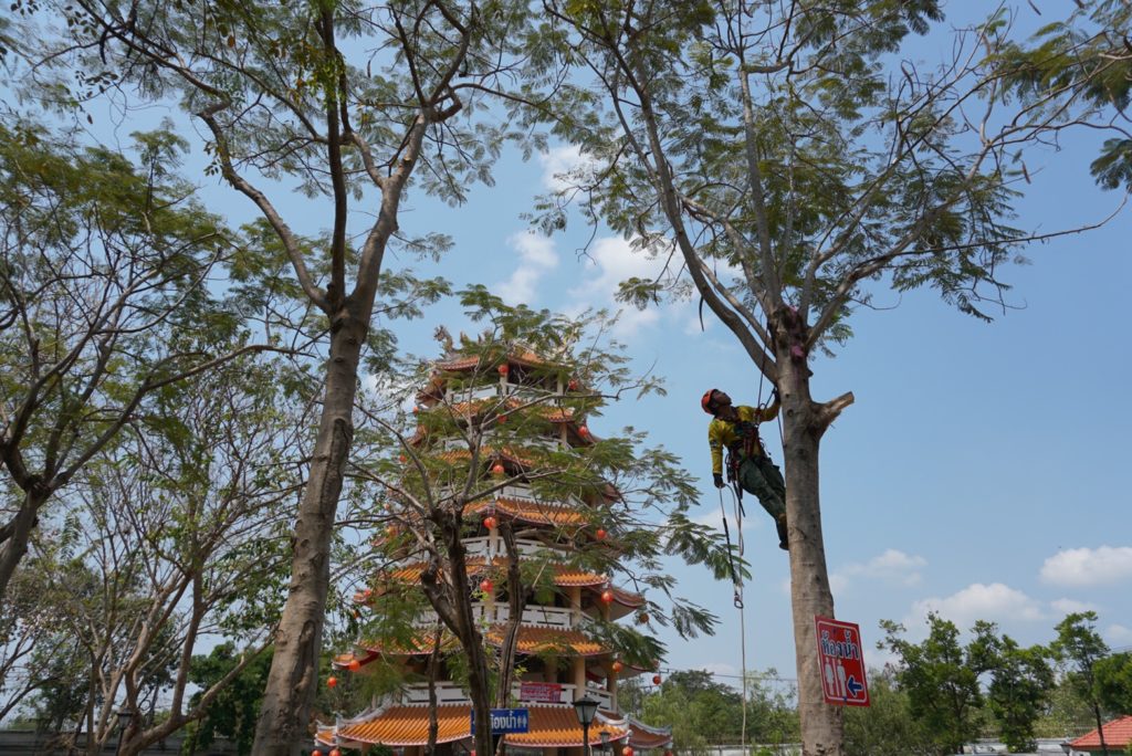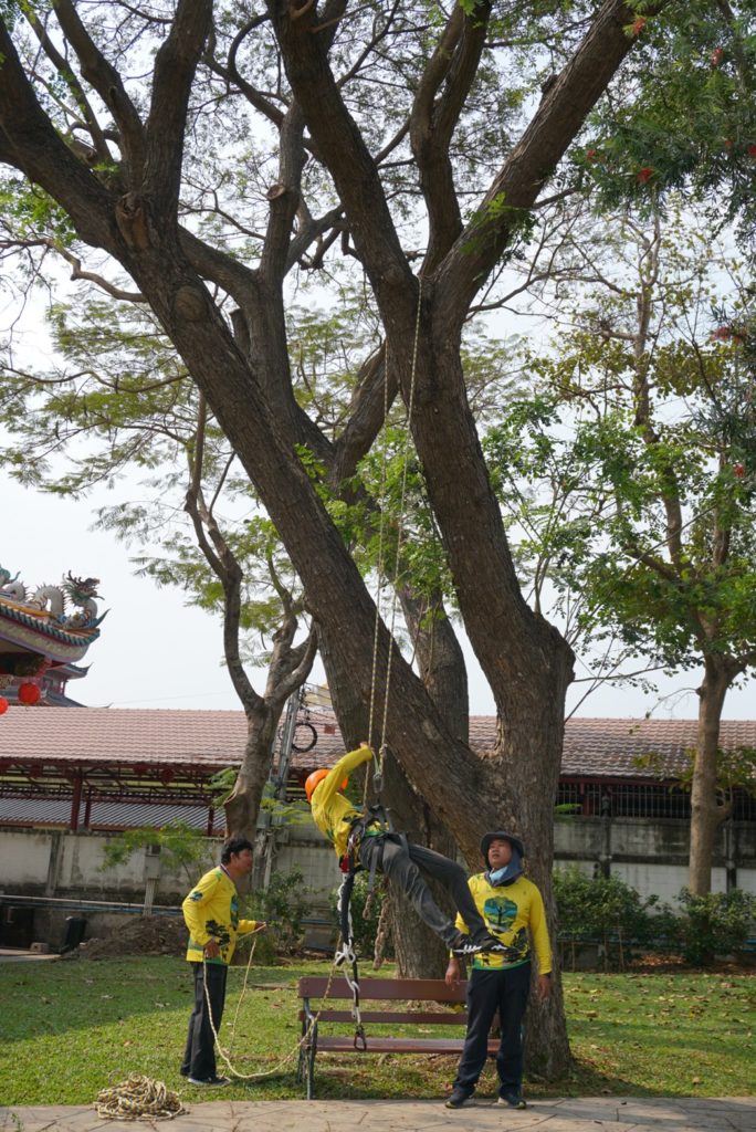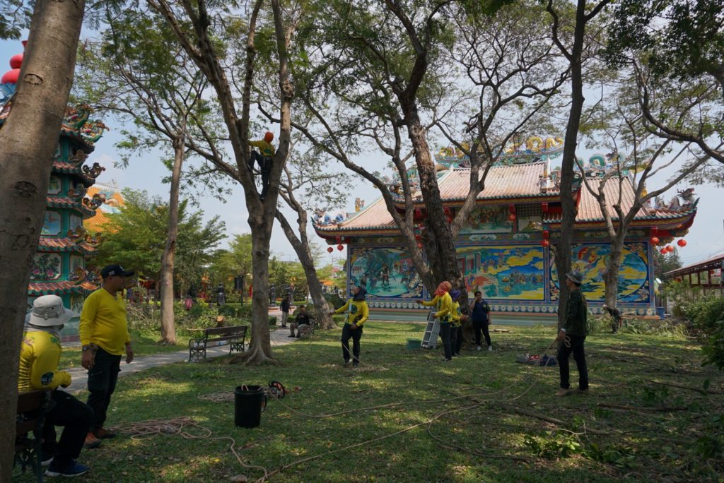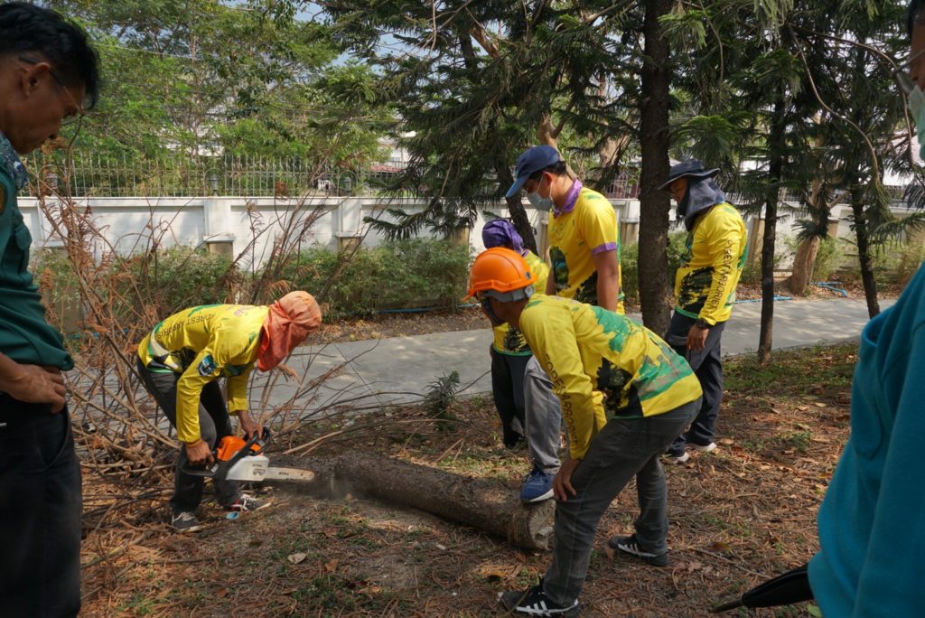 ชุดปฏิบัติการรุกขกรประจำสำนักจัดการทรัพยากรป่าไม้ที่ 10 (ราชบุรี) พร้อมด้วยเจ้าหน้าที่ศูนย์ป่าไม้สุพรรณบุรี และ ชุดปฏิบัติการรุกขกรประจำศูนย์วิจัยและพัฒนาการป่าไม้ภาคกลาง ปฏิบัติงาน ตัดแต่ง ดูแล บำรุงรักษาต้น ไม้ ณ บริเวณอุทยานมังกรสวรรค์ ศาลเจ้าพ่อหลักเมือง อำเกอเมือง จังหวัดสุพรรณบุรี จากการตรวจสอบต้นไม้ในพื้นที่อุทยานฯ พบว่ามีปัญหาแมลงศัตรูพืชเข้าทำลาย ได้แนะนำให้เจ้าหน้าที่ของอุทยานฯ เพิ่มการรดน้ำและใช้ยาฆ่าแมลงชนิดดูดชึม ราดบริเวณโคนต้น