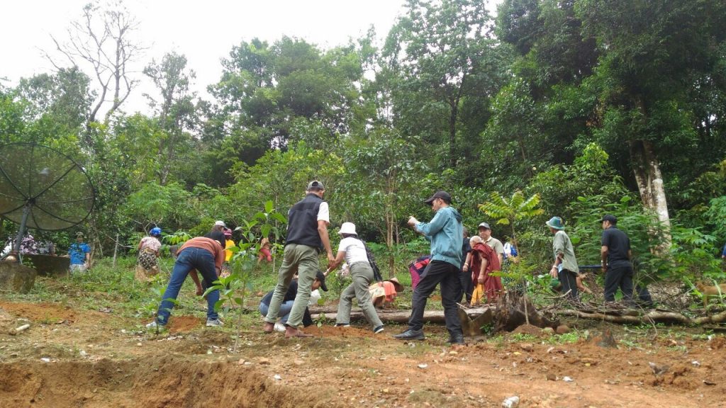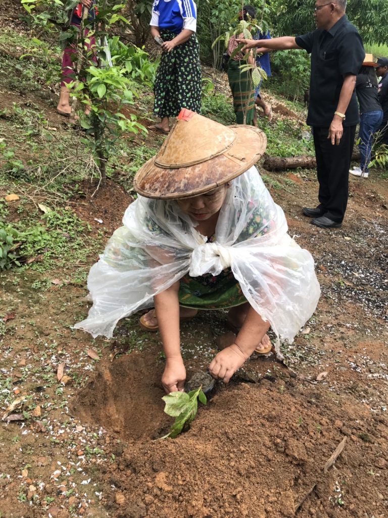 วันพุธที่ ๒๙ พฤษภาคม ๒๕๖๒ ทีมงานคลินิกเคลื่อนที่ “ไม้มีค่า ป่าชุมชน คนอยู่กับป่า” สำนักจัดการทรัพยากรป่าไม้ที่ ๑๐ (ราชบุรี) ร่วมกับราษฎรหมู่บ้านอีต่อง ตำบลปิล็อก อำเภอทองผาภูมิ จังหวัดกาญจนบุรี ทำการปลูกต้นไม้ ตามนโยบายท่านอธิบดีกรมป่าไม้ ที่ให้ราษฎรที่ได้รับประโยชน์จากการจัดที่ดินนโยบายการจัดที่ดินแห่งชาติ (คทช.) ในพื้นที่ลุ่มน้ำชั้นที่ ๑ และ ๒ ต้องร่วมกันปลูกต้นไม้ ในพื้นที่ตนเองหรือ พื้นที่สาธารณะประโยชน์ โดยได้ร่วมกันปลูกต้นพะยูง ต้นสัก ต้นประดู่ รวมจำนวน ๑๐๐ ต้นและได้ลงทะเบียนการปลูกต้นไม้ ตามโครงการ “รวมใจไทย ปลูกต้นไม้ เพื่อแผ่นดิน” แล้ว