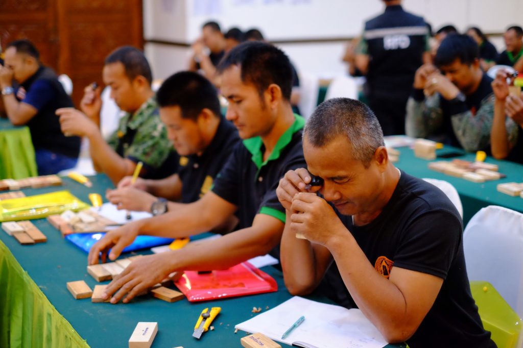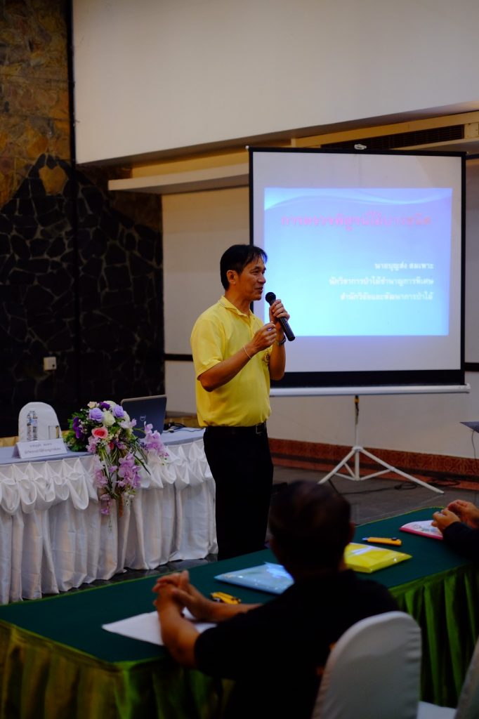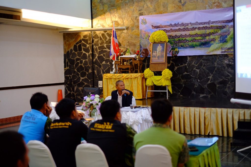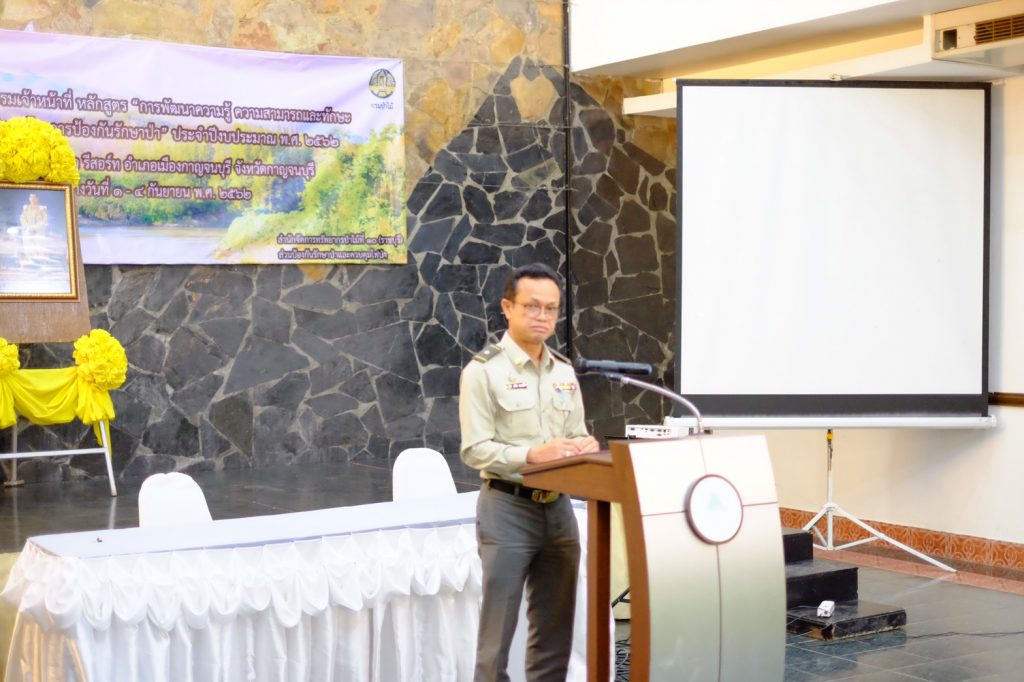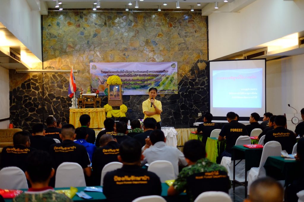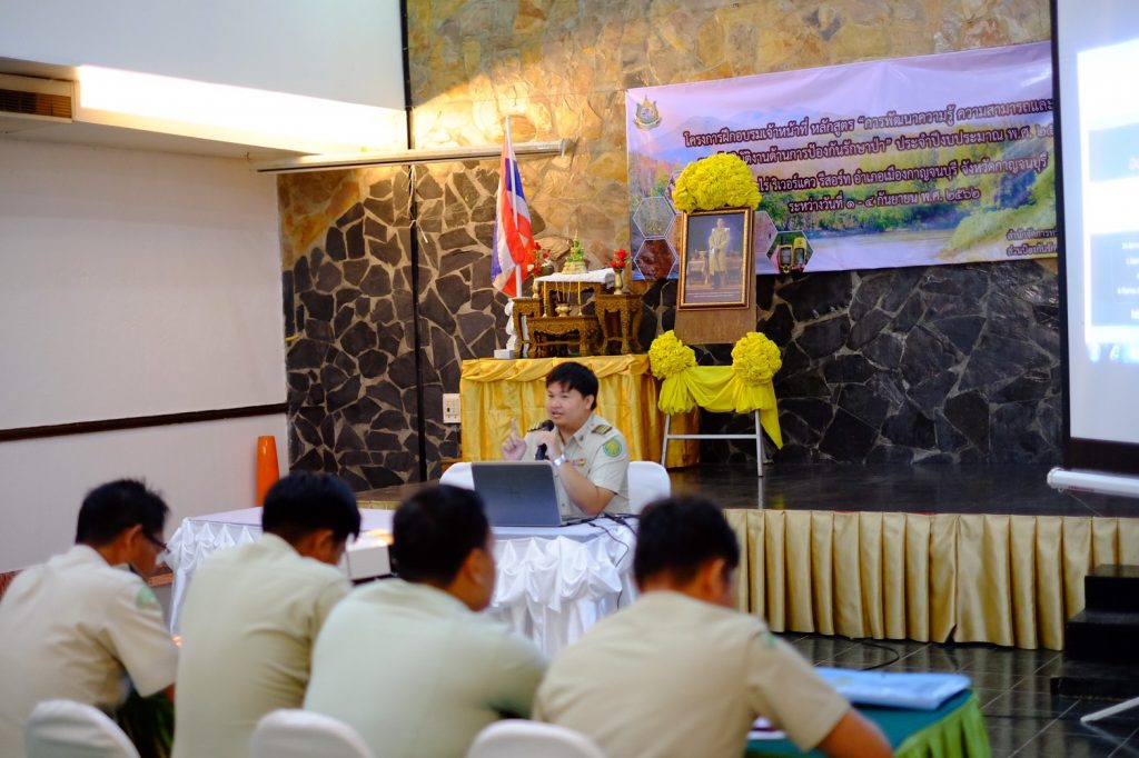 “การพัฒนาความรู้ ความสามารถและทักษะของผู้ปฏิบัติงานด้านการป้องกันรักษาป่า” ประจำปีงบประมาณ พ.ศ.2562 มีวัตถุประสงค์เพื่อเสริมสร้างความรู้ ความเข้าใจให้ผู้เข้ารับการฝึกอบรมสามารถปฏิบัติงานได้อย่างถูกต้องครบถ้วนตามขั้นตอนการปฏิบัติงาน รวมถึงการรายงานและการตรวจติดตามการกระทำความผิดกฎหมายว่าด้วยเรื่องกฎหมายป่าไม้ในกรณีต่าง ๆ มีรายวิชาสำคัญ ดังนี้ แนวทางปฏิบัติการทำงานด้านการป้องกันรักษาป่าและการเขียนบันทึกการจับกุม, การตรวจพิสูจน์เนื้อไม้, ขั้นตอน และแนวทางปฏิบัติการดำเนินคดีการกระทำผิดว่าด้วยเรื่องกฎหมายป่าไม้, หลักการจัดการป่าชุมชน และการตรวจสอบกิจการอุตสาหกรรมไม้ โดยมีผู้เข้ารับการฝึกอบรมจากศูนย์ป่าไม้ และหน่วยป้องกันรักษาป่าในสังกัด จำนวน 43 คน ณ บ้านไร่ ริเวอร์แคว รีสอร์ท อำเภอเมืองกาญจนบุรี จังหวัดกาญจนบุรี