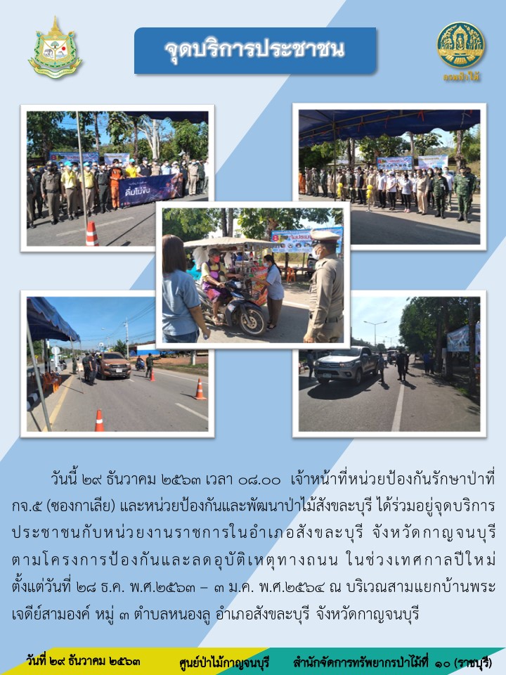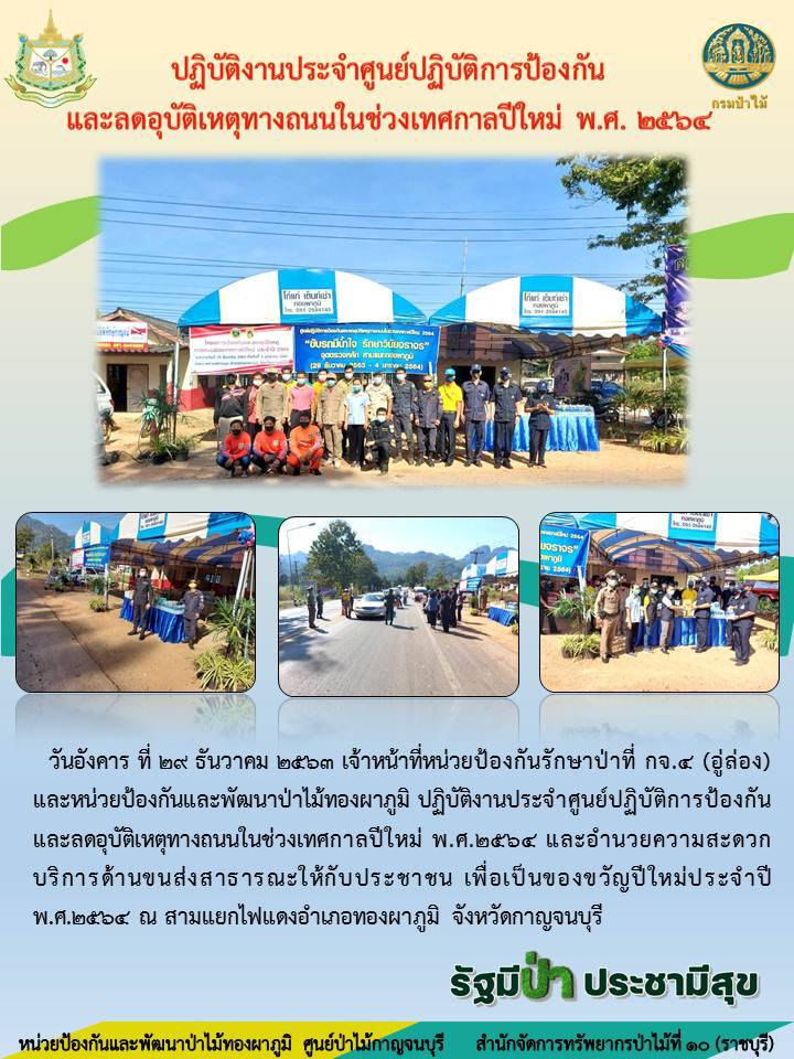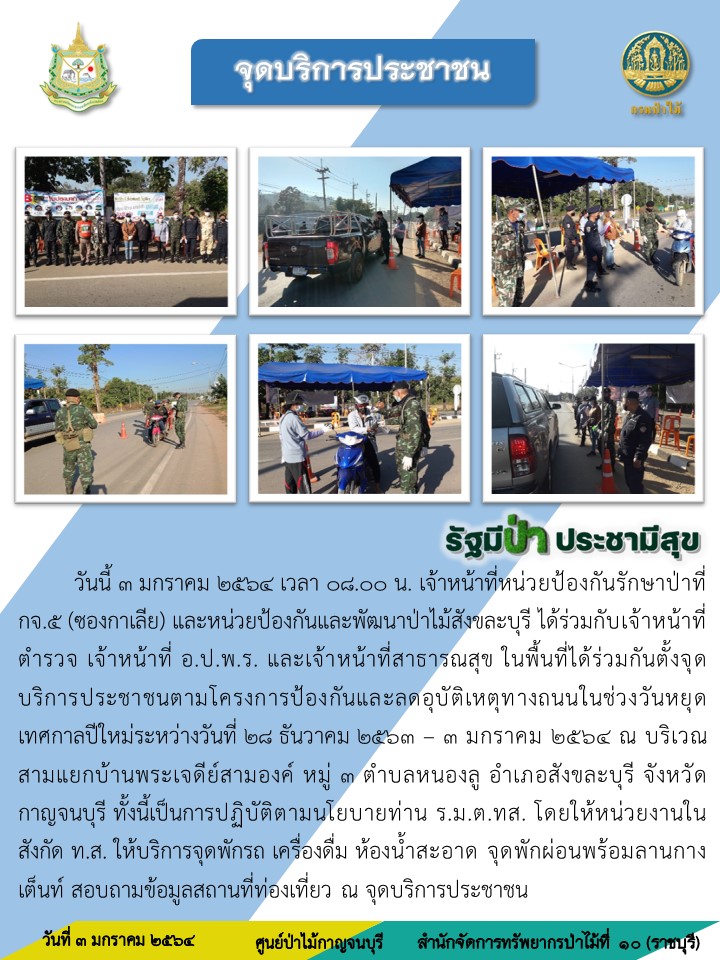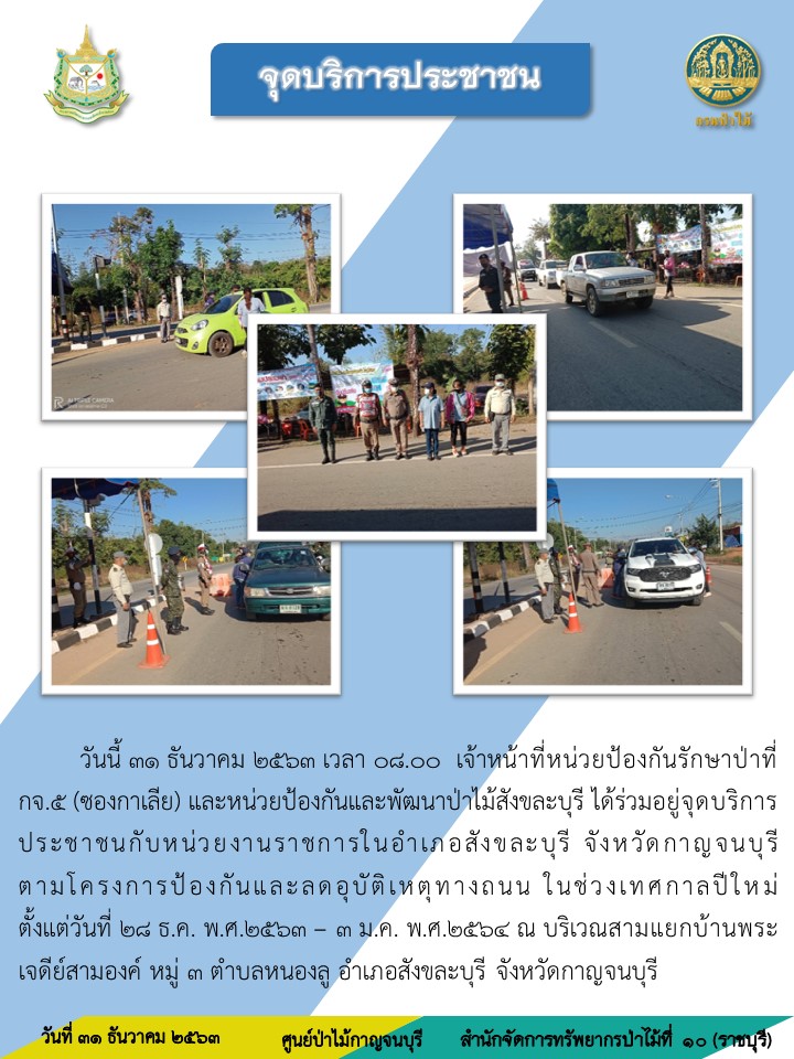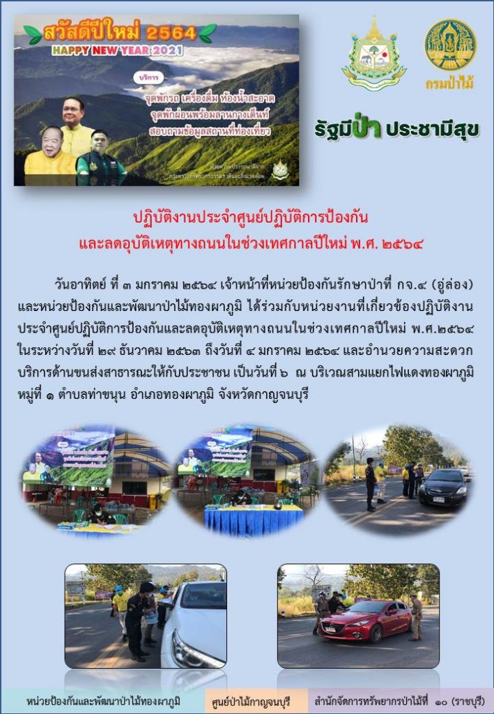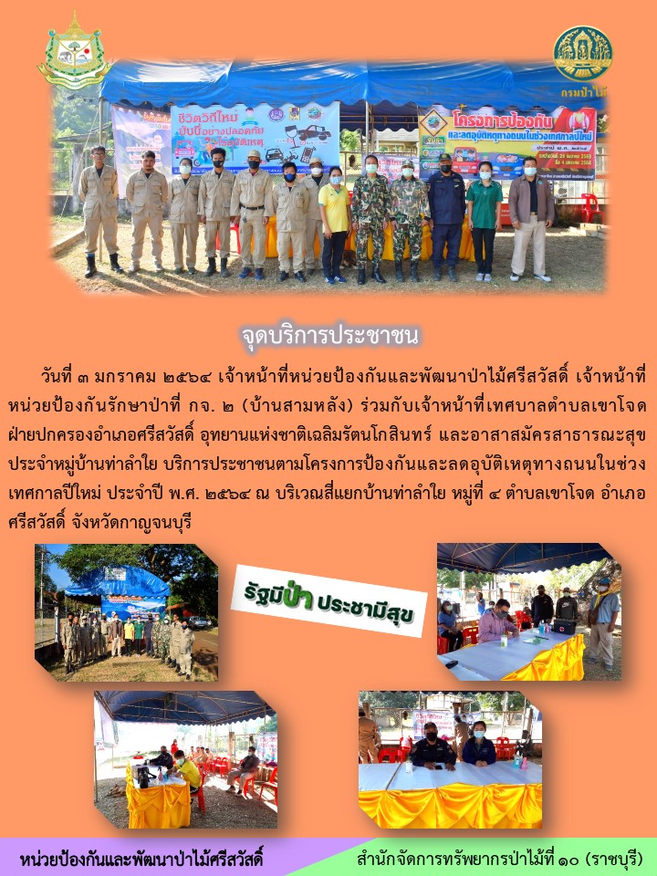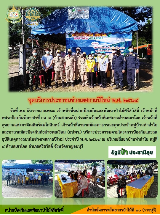 สำนักจัดการทรัพยากรป่าไม้ที่ 10 (ราชบุรี) ให้บริการประชาชน ป้องกันและลดอุบัติเหตุทางถนน ในช่วงเทศกาลปีใหม่ พ.ศ.2564