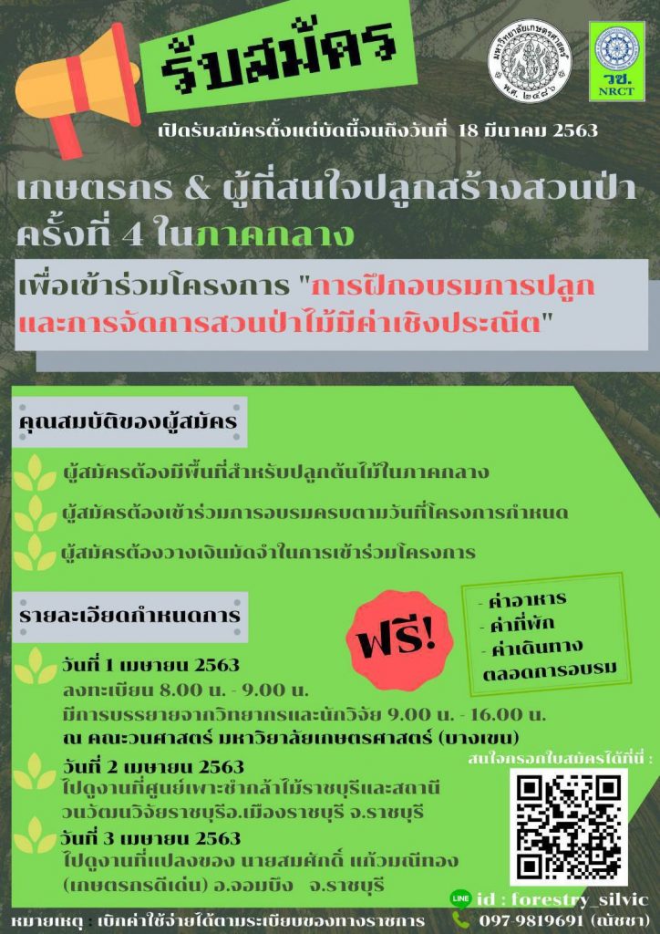 เปิดรับสมัครเกษตรกรและผู้ที่สนใจปลูกสร้างสวนป่าครั้งที่ 4 ในภาคกลาง เพื่อเข้าร่วมโครงการ “การฝึกอบรมการปลูกและการจัดการสวนป่าไม้มีค่าเชิงประณีต”