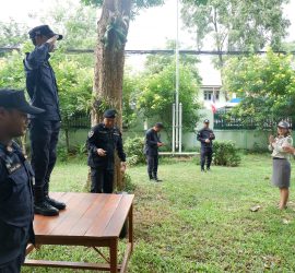 วันพฤหัสบดีที่ ๘ สิงหาคม ๒๕๖๒ เวลา ๐๙.๐๐ น.ส านักจัดการทรัพยากรป่าไม้ที่ ๑๐ (ราชบุรี) ได้จัดฝึกทบทวนบุคคลท่ามือเปล่า การจัดระเบียบแถว การท าความเคารพ ฯลฯ เพื่อเพิ่มศักยภาพและรักษาระเบียบวินัยของบุคลากร โดยนายวิวรรธน์ มองเห็นทวีโชค เจ้าพนักงานป่าไม้ช านาญงาน หัวหน้าหน่วยฝึกทางยุทธวิธีด้านป้องกันรักษาป่าและควบคุมไฟป่า พร้อมคณะวิทยากร เป็นผู้น าฝึกเจ้าหน้าที่ส านักจัดการทรัพยากรป่าไม้ที่ ๑๐ (ราชบุรี) เข้ารับการฝึก จ านวน ๔๒ คน
