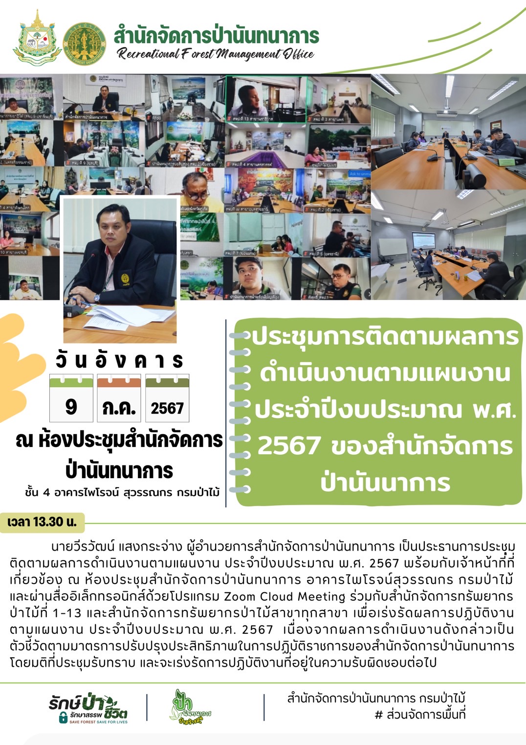 แนะแนวเรื่อง การประชุมซักซ้อมแนวทางปฏิบัติโครงการพัฒนาแหล่งท่องเที่ยวเชิงนิเวศ และประวัติศาสตร์อุโมงค์ใหญ่ “ต้าสวุ่ยต้อ” ในเขตป่าสงวนแห่งชาติ ป่าเบตง จังหวัดยะลา ติดตามผลการดำเนินงาน สจป.6 (อุดรธานี) (ฝ่ายป่านันทนาการ) ตามแผนปฏิบัติงานและแผนการใช้จ่ายเงิน ประจำปีงบประมาณ พ.ศ. 2567