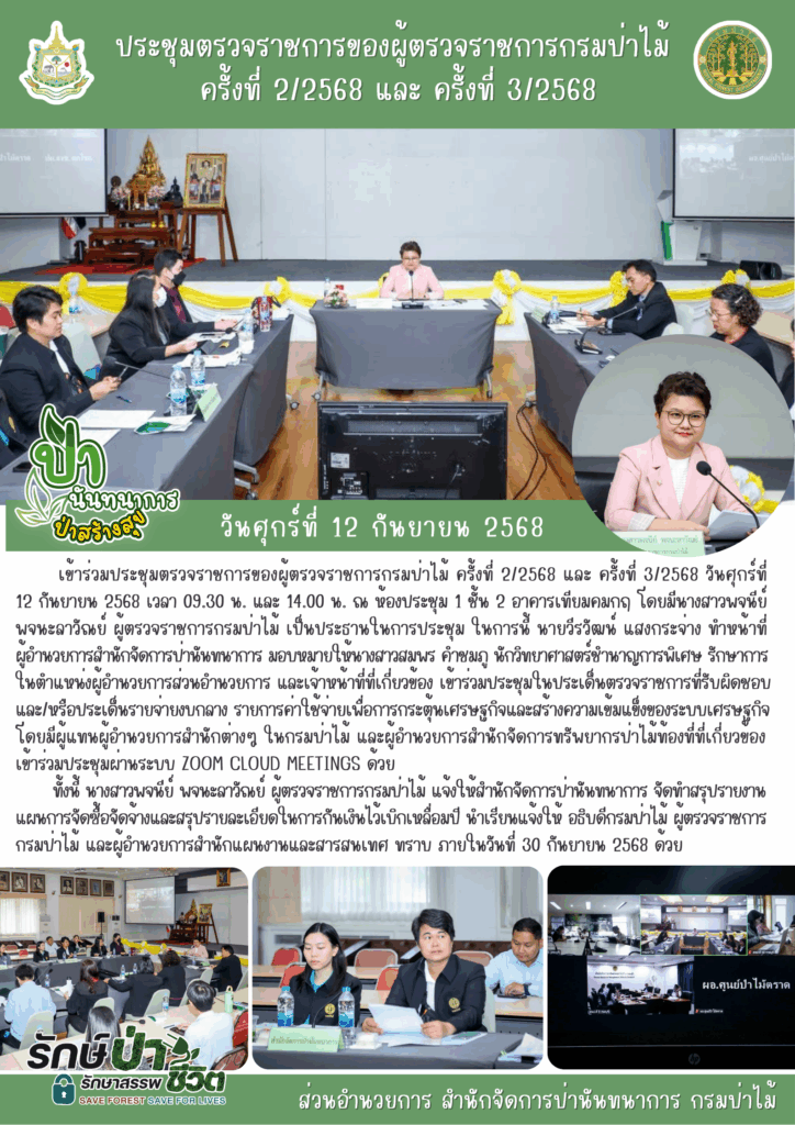 แนะแนวเรื่อง ลงพื้นที่เพื่อประสานการปฏิบัติงานเกี่ยวกับการก่อสร้างสิ่งอำนวยความสะดวกและจัดทำผังบริเวณ (Site Plan) โครงการพัฒนาพื้นที่ป่าเพื่อการเรียนรู้และนันทนาการเขาเต่า จ.ประจวบคีรีขันธ์ (10 ก.ย.68) ประชุมชี้แจงการจัดทำข้อมูลรายงานการติดตามประเมินผลการบริหารจัดการความเสี่ยงและการควบคุมภายในของกรมป่าไม้ ประจำปีงบประมาณ พ.ศ. 2568 (10 ก.ย.68)