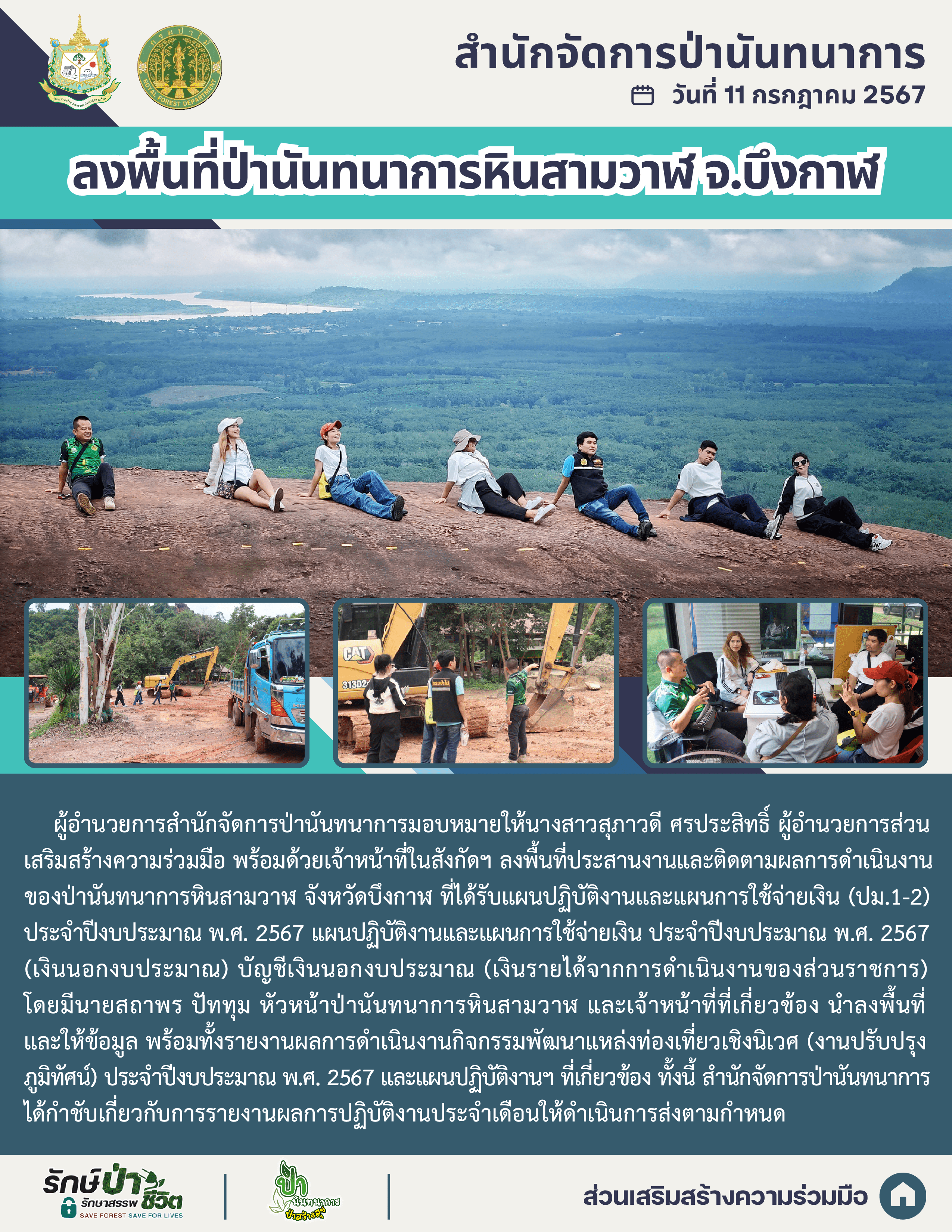 แนะแนวเรื่อง ประชุมหารือกรณีการแบ่งเงินค่าบริการหรือค่าตอบแทนแก่องค์กรปกครองส่วนท้องถิ่นที่อยู่ในเขตป่าสงวนแห่งชาติ ลงพื้นที่ป่านันทนาการน้ำตกหินตั้ง จ.อุดรธานี และป่านันทนาการถ้ำสิงห์ จ.อุดรธานี และจ.หนองบัวลำภู