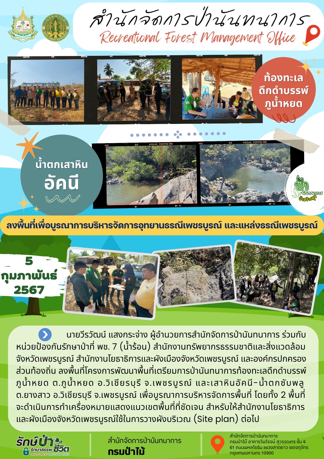 แนะแนวเรื่อง สปน.ลงพื้นที่น้ำตกธารารักษ์ (น้ำตกผาชัน) และถ้ำสีฟ้า จ.ตาก ลงพื้นที่เพื่อบูรณาการบริหารจัดการอุทยานธรณีเพชรบูรณ์ และแหล่งธรณีเพชรบูรณ์