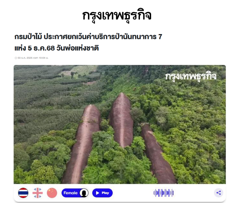 ข่าวตัดจากหนังสือพิมพ์และเว็บไซต์ออนไลน์ที่เกี่ยวข้องของสำนักจัดการป่านันทนาการ (ข่าวประจำวันที่ 4 ธันวาคม 2568)