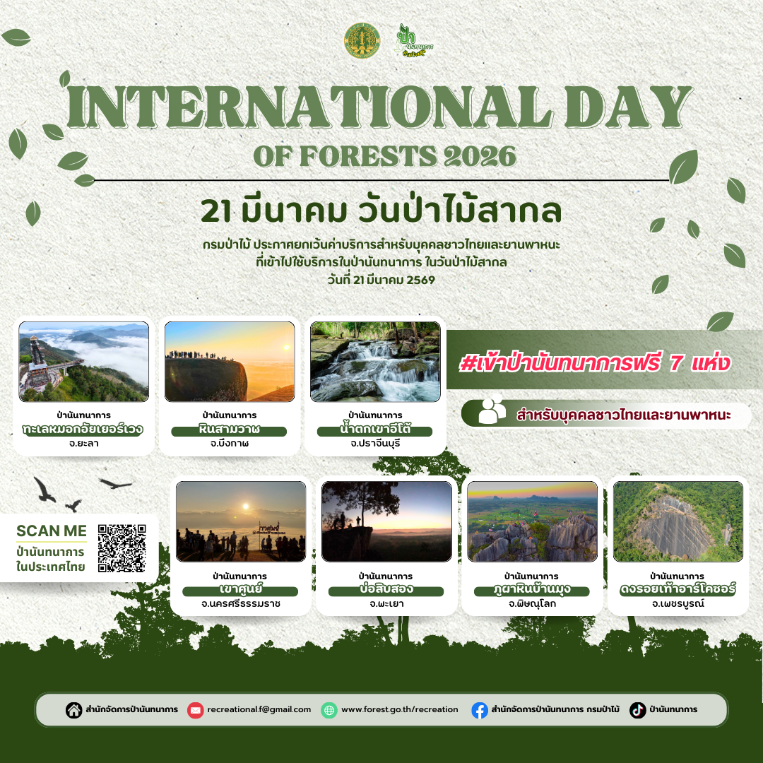 กรมป่าไม้จึงได้ยกเว้นค่าบริการสำหรับบุคคลชาวไทยและยานพาหนะ ย้ำ!! คนไทยเข้าฟรี