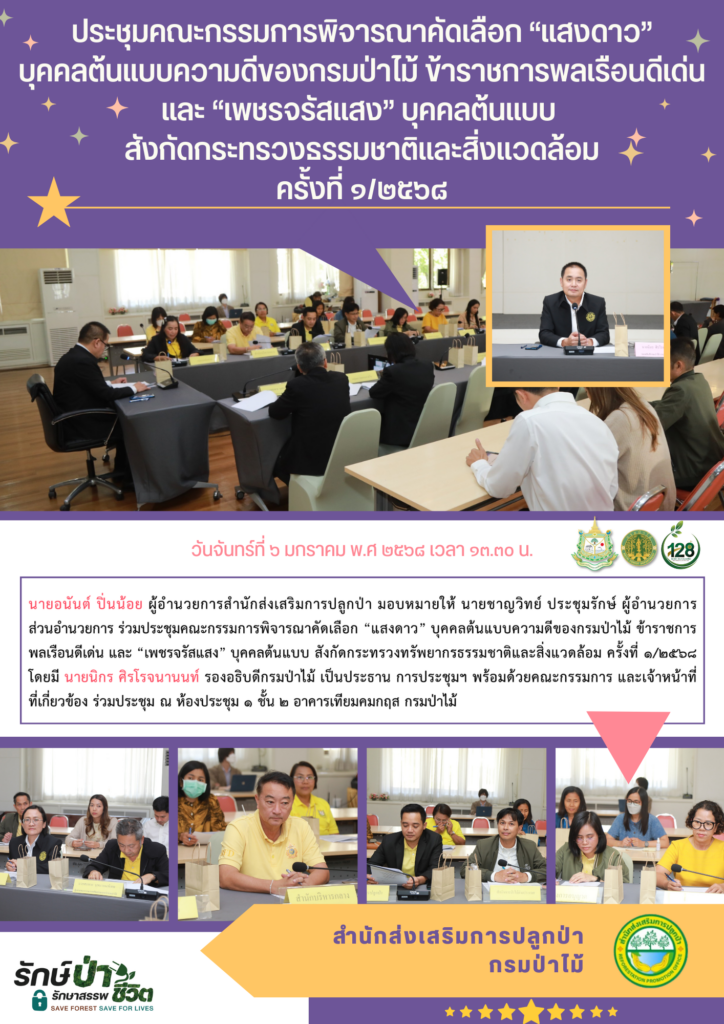 ประชุมคณะกรรมการพิจารณาคัดเลือก “แสงดาว” บุคคลต้นแบบความดีของกรมป่าไม้ ข้าราชการพลเรือนดีเด่น และ “เพชรจรัสแสง” บุคคลต้นแบบ สังกัดกระทรวงธรรมชาติและสิ่งแวดล้อม ครั้งที่ ๑/๒๕๖๘
