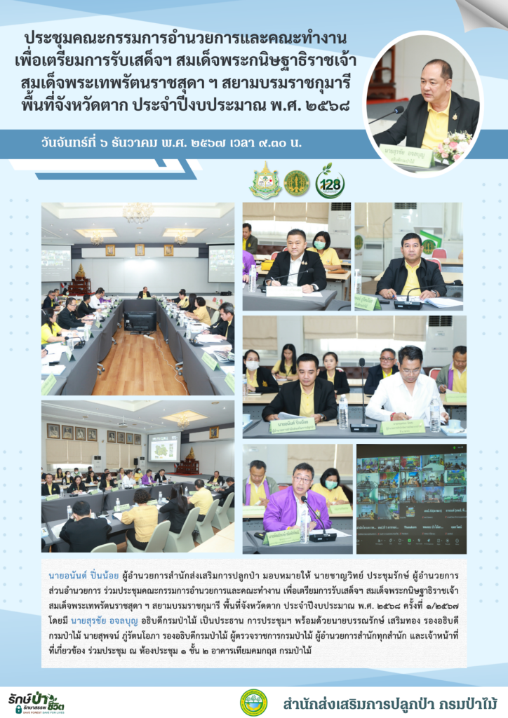 ประชุมคณะกรรมการอำนวยการและคณะทำงานเพื่อเตรียมการรับเสด็จฯ สมเด็จพระกนิษฐาธิราชเจ้าสมเด็จพระเทพรัตนราชสุดา ฯ สยามบรมราชกุมารี พื้นที่จังหวัดตาก ประจำปีงบประมาณ พ.ศ. ๒๕๖๘