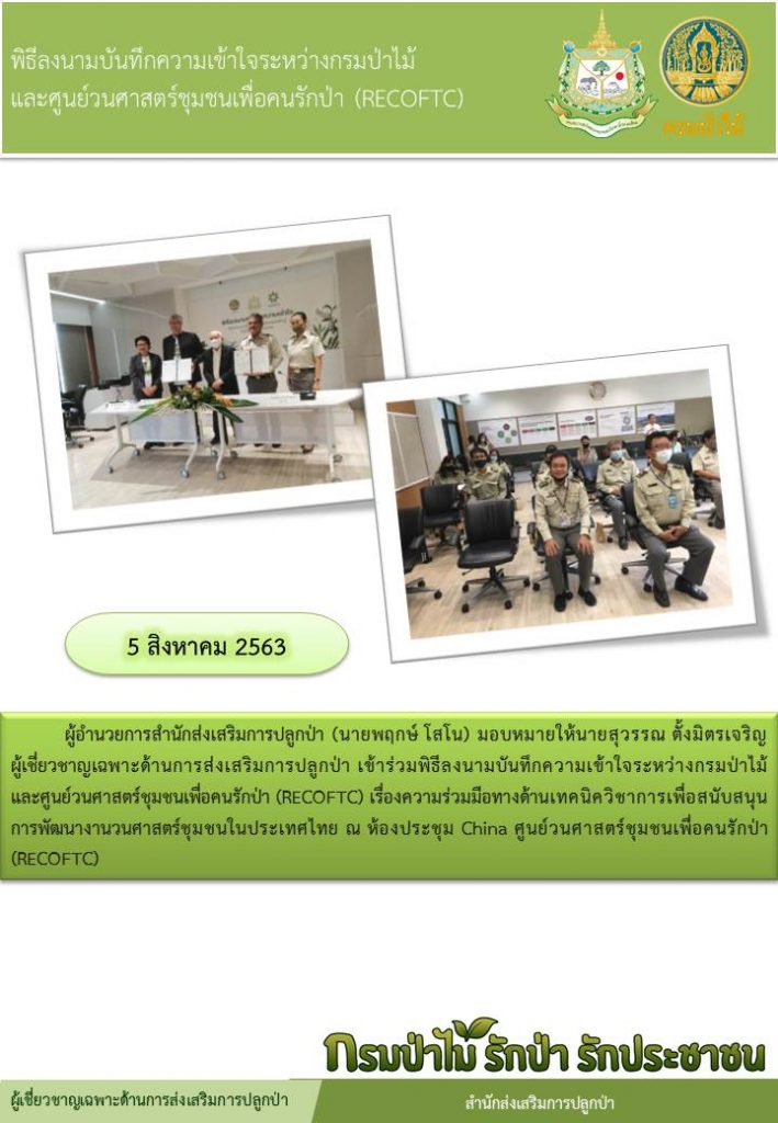 พิธีลงนามบันทึกความเข้าใจระหว่างกรมป่าไม้และศูนย์วนศาสตร์ชุมชนเพื่อคนรักป่า (RECOFTC)รายการนี้ถูกเผยแพร่ใน แผนที่ on 6 สิงหาคม 2020 by nuttapong