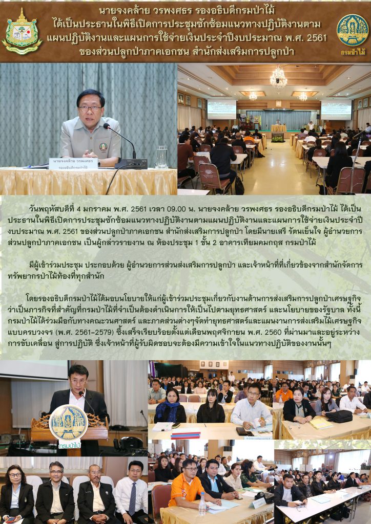 การประชุมซักซ้อมแนวทางปฏิบัติงานตามแผนปฏิบัติและแผนการใช้จ่ายเงินประจำปีงบประมาณ พ.ศ.2561 ของส่วนปลูกป่าภาคเอกชน สสป.รายการนี้ถูกเผยแพร่ใน ข่าวสารสำนัก on 4 มกราคม 2018 by charit