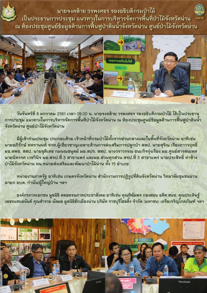 การประชุมแนวทางในการบริหารจัดการพื้นที่ป่าไม้จังหวัดน่าน ณ ห้องประชุมศูนย์ข้อมูลด้านการฟื้นฟูป่าต้นน้ำจังหวัดน่าน ศูนย์ป่าไม้จังหวัดน่านรายการนี้ถูกเผยแพร่ใน ข่าวสารสำนัก on 8 มกราคม 2018 by aofks