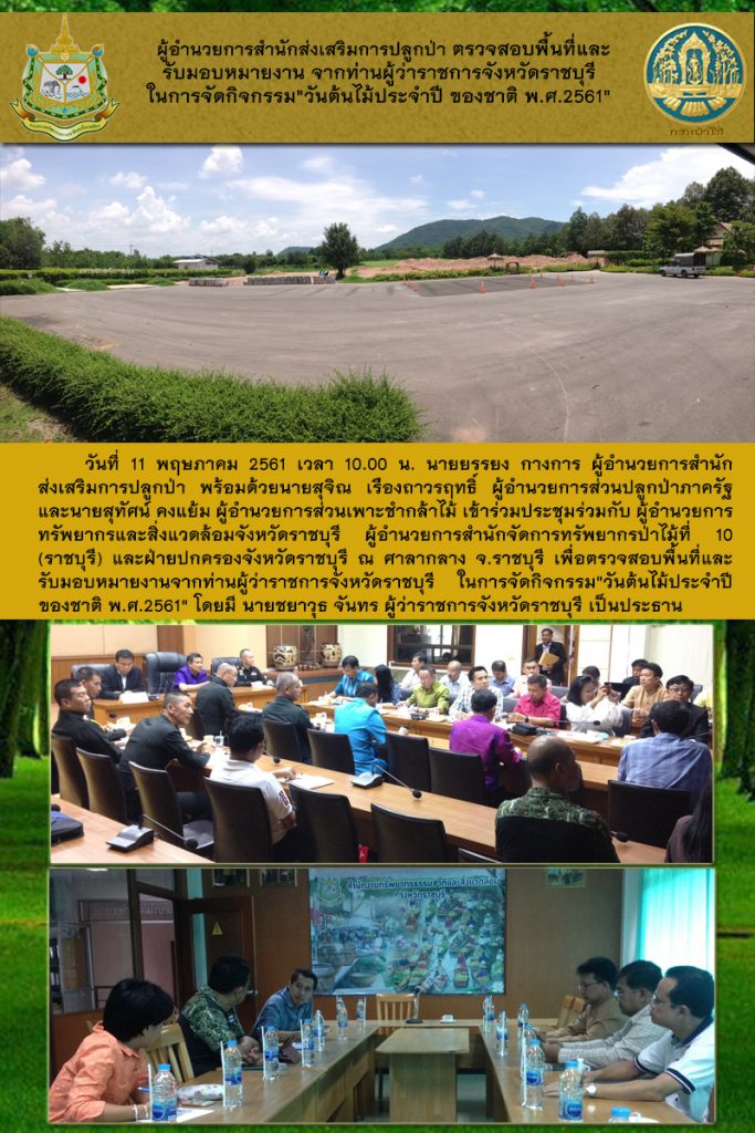 ตรวจสอบพื้นที่และรับมอบหมายงาน จากท่านผู้ว่าราชการจังหวัดราชบุรี ในการจัดกิจกรรม”วันต้นไม้ประจำปี ของชาติ”รายการนี้ถูกเผยแพร่ใน ข่าวสารสำนัก on 16 พฤษภาคม 2018 by charit