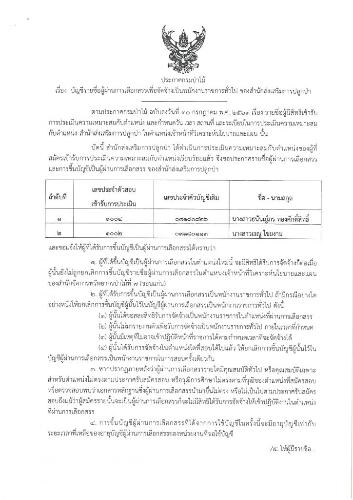บัญชีรายชื่อผู้ผ่านการเลือกสรรเพื่อจัดจ้างเป็นพนักงานราชการทั่วไป ของสำนักส่งเสริมการปลูกป่ารายการนี้ถูกเผยแพร่ใน แผนที่ on 5 สิงหาคม 2020 by nuttapong DOWN LOAD