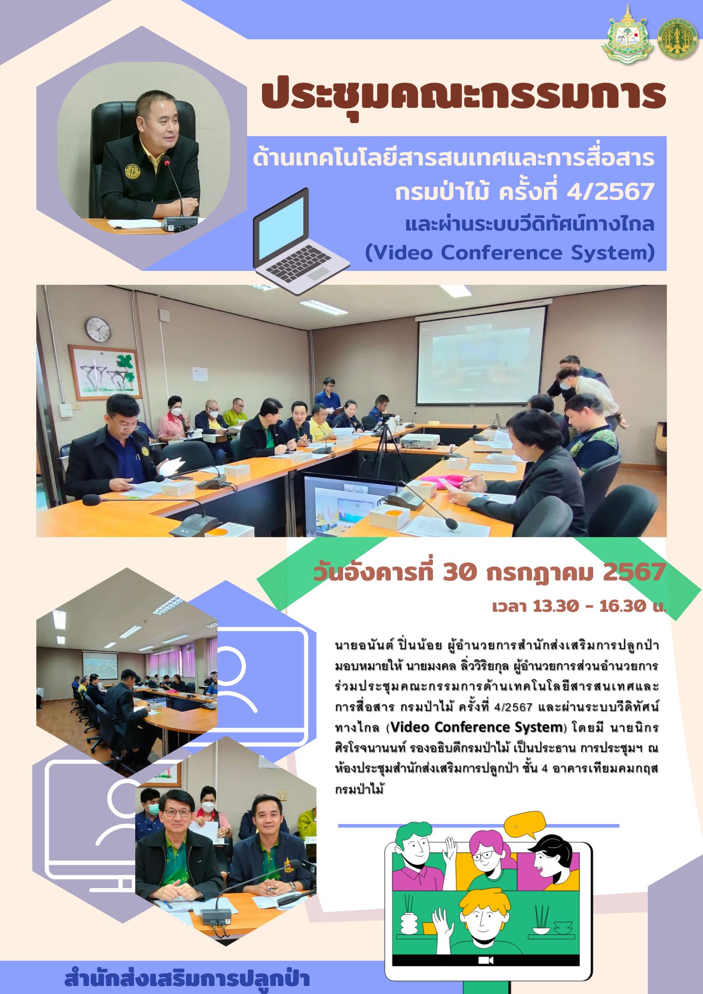 ประชุมคณะกรรมการด้านเทคโนโลยีสารสนเทศและการสื่อสาร กรมป่าไม้ ครั้งที่ 4/2567 และผ่านระบบวีดิทัศน์ทางไกล
