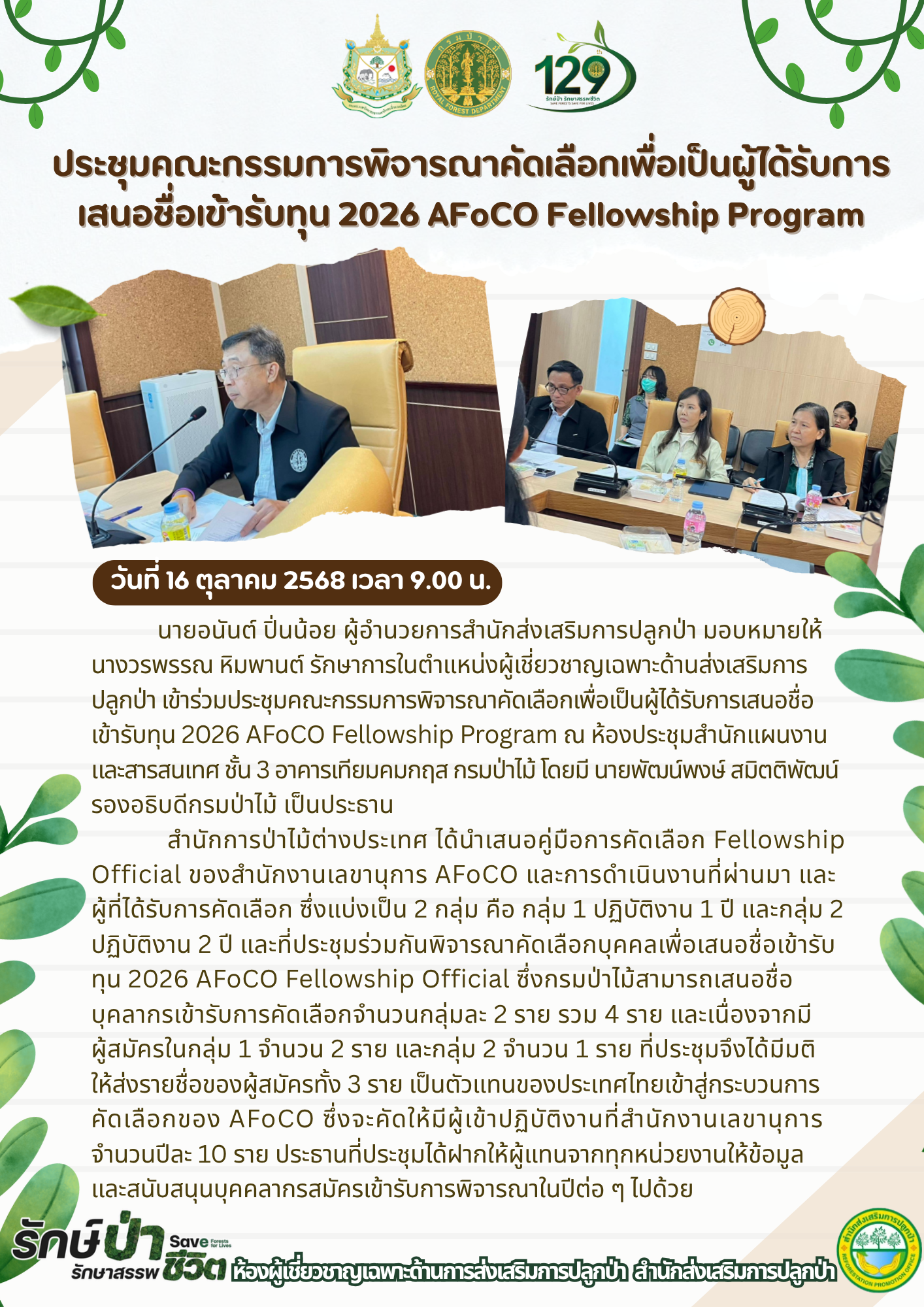 ประชุมคณะกรรมการพิจารณาคัดเลือกเพื่อเป็นผู้ได้รับการเสนอชื่อเข้ารับทุน 2026 AFoCO Fellowship Programรายการนี้ถูกเผยแพร่ใน ข่าวสารสำนัก on 20 ตุลาคม 2025 by panlop