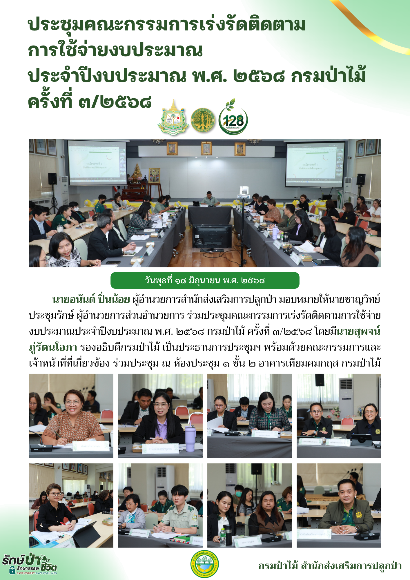 ประชุมคณะกรรมการเร่งรัดติดตามการใช้จ่ายงบประมาณประจำปีงบประมาณ พ.ศ. ๒๕๖๘ กรมป่าไม้ ครั้งที่ ๓/๒๕๖๘