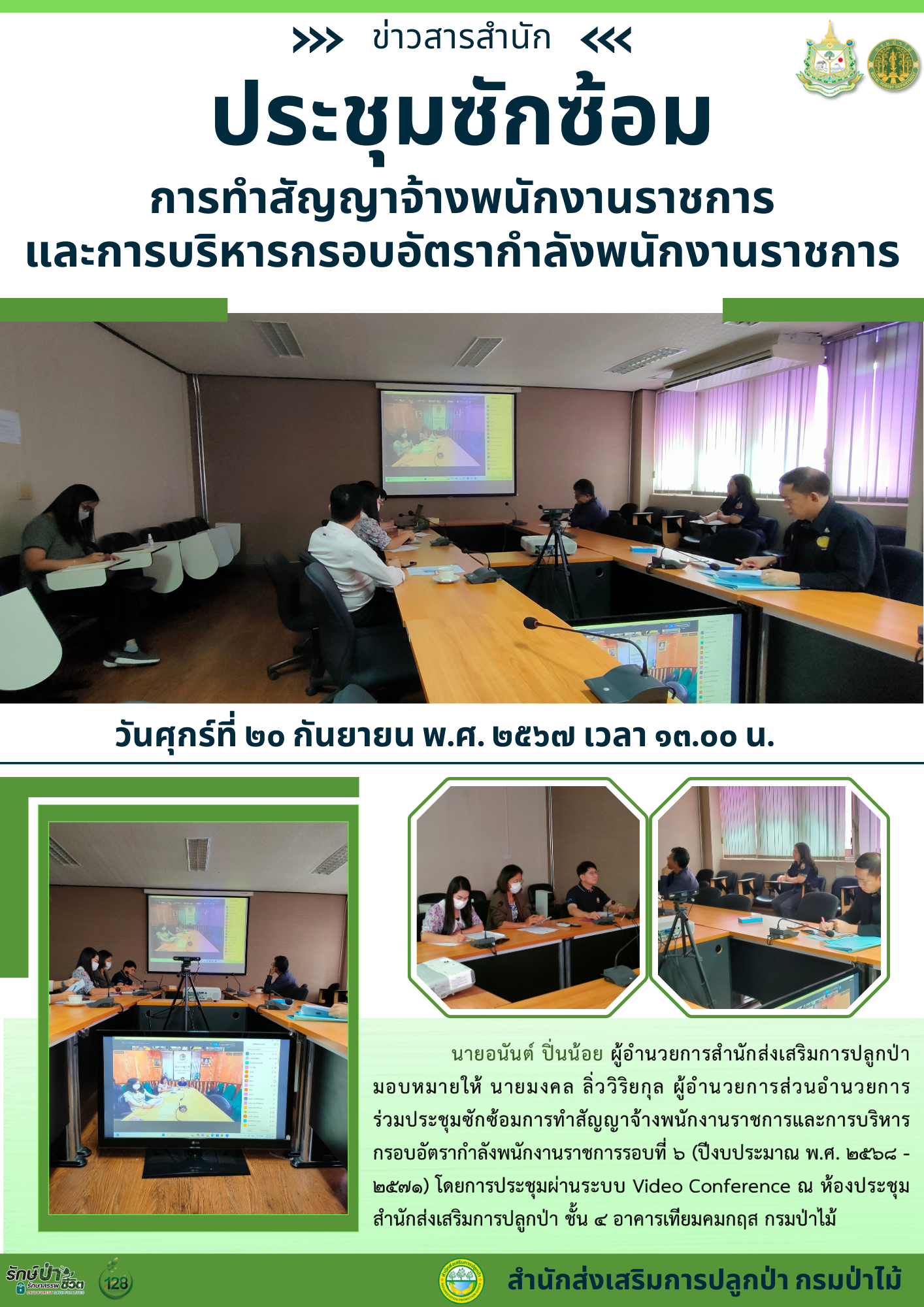 ประชุมซักซ้อมการทำสัญญาจ้างพนักงานราชการและการบริหารกรอบอัตรากำลังพนักงานราชการรอบที่ 6 (ปีงบประมาณ พ.ศ. 2568-2571)รายการนี้ถูกเผยแพร่ใน ข่าวสารสำนัก on 21 กันยายน 2024 by panlop