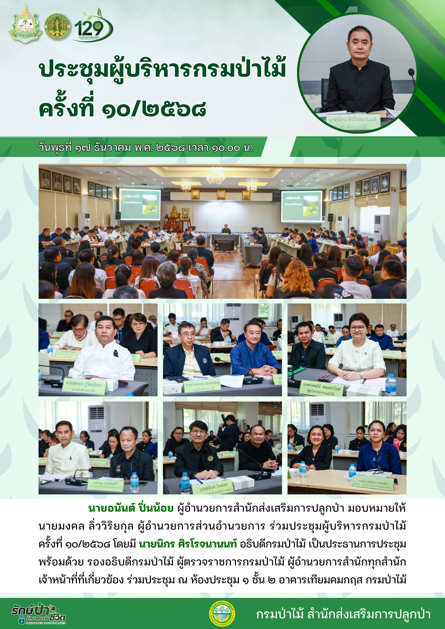 ประชุมผู้บริหารกรมป่าไม้ ครั้งที่ ๑๐/๒๕๖๘รายการนี้ถูกเผยแพร่ใน ข่าวสารสำนัก on 17 ธันวาคม 2025 by panlop