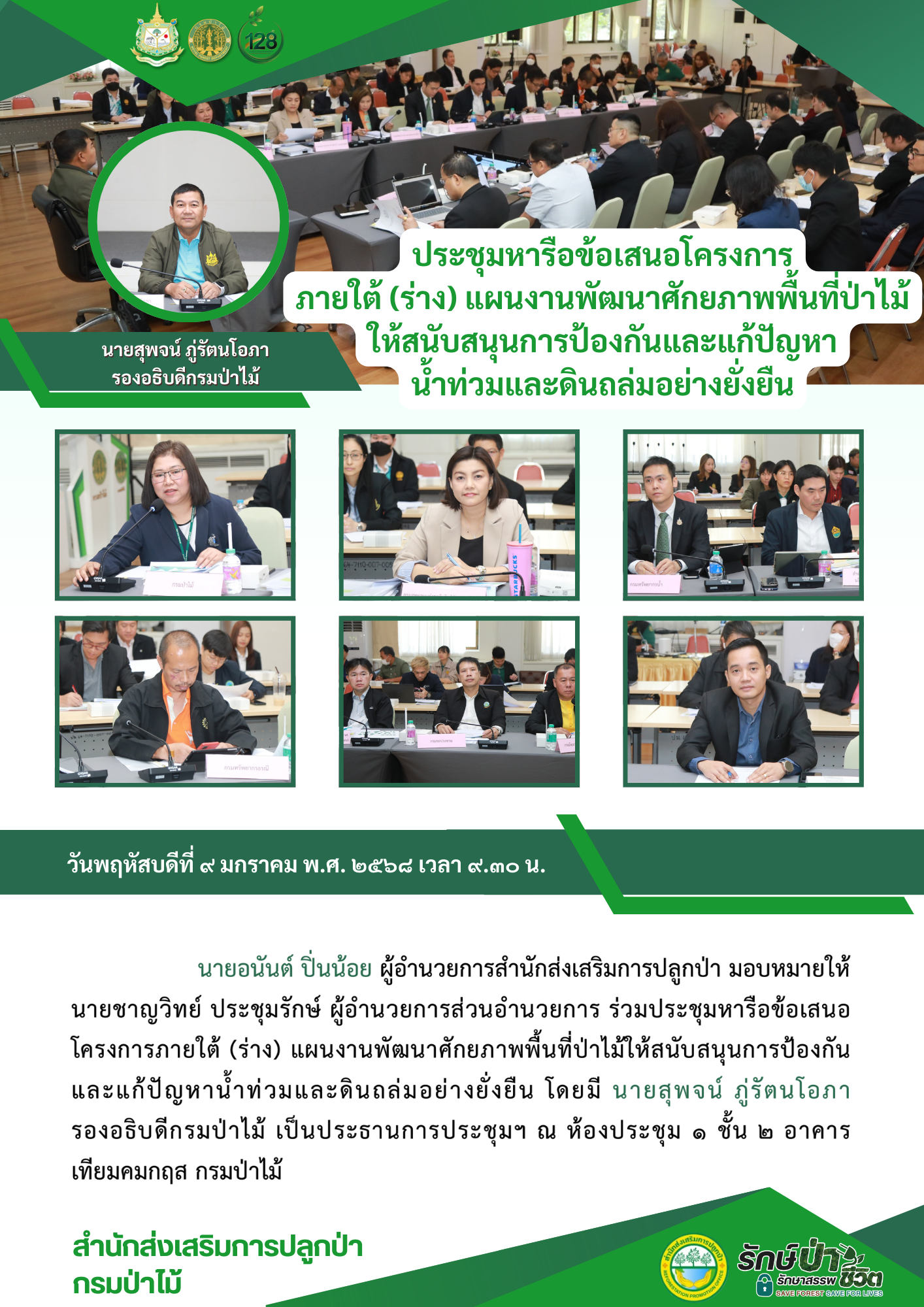 ประชุมหารือข้อเสนอโครงการภายใต้ (ร่าง) แผนงานพัฒนาศักยภาพพื้นที่ป่าไม้ให้สนับสนุนการป้องกันและแก้ปัญหาน้ำท่วมและดินถล่มอย่างยั่งยืนรายการนี้ถูกเผยแพร่ใน ข่าวสารสำนัก on 15 มกราคม 2025 by panlop
