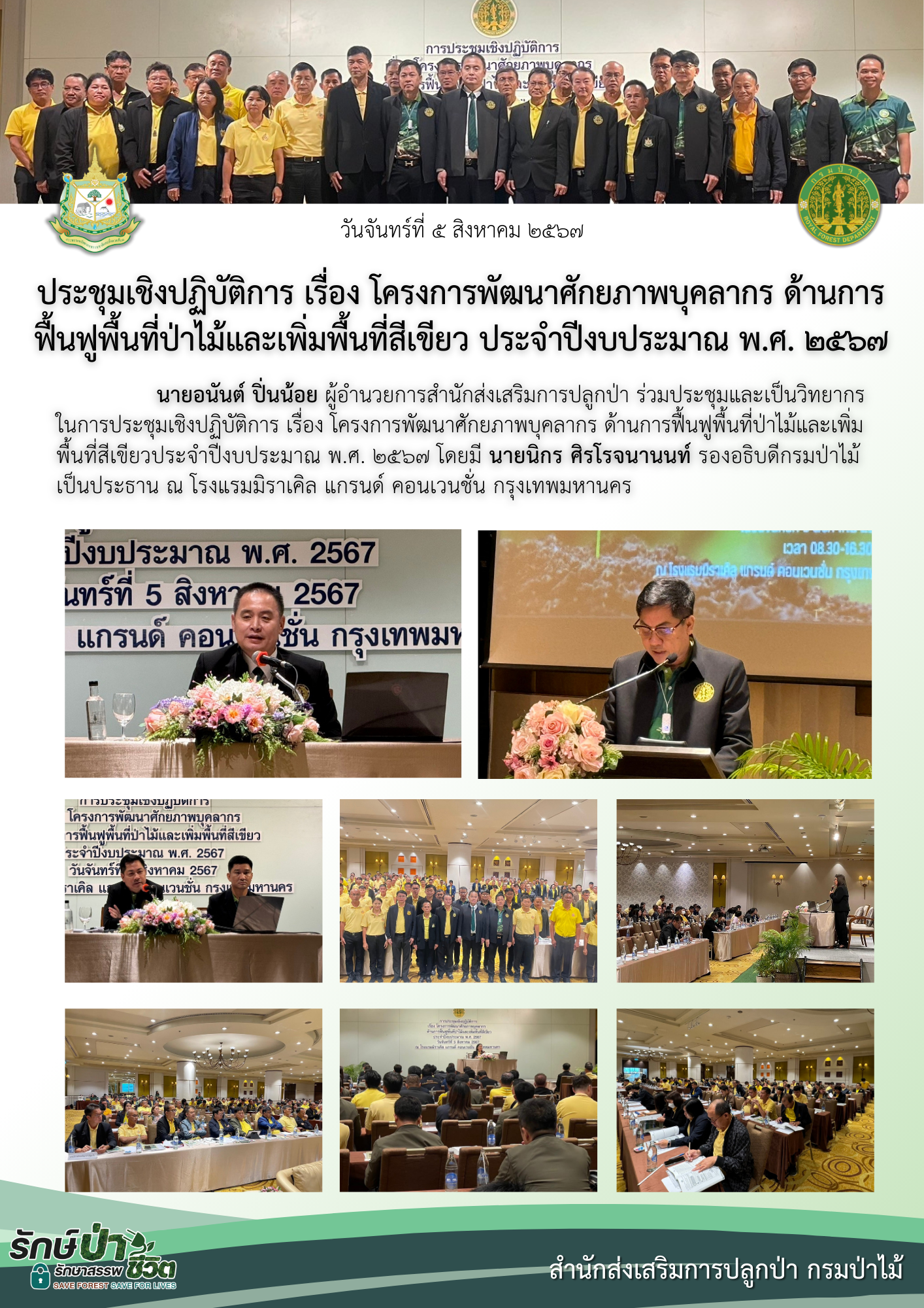 ประชุมเชิงปฏิบัติการ เรื่อง โครงการพัฒนาศักยภาพบุคลากรด้านการฟื้นฟูป่าไม้และเพิ่มพื้นที่สีเขียว ประจำปีงบประมาณ พ.ศ. 2567รายการนี้ถูกเผยแพร่ใน ข่าวสารสำนัก on 6 สิงหาคม 2024 by panlop