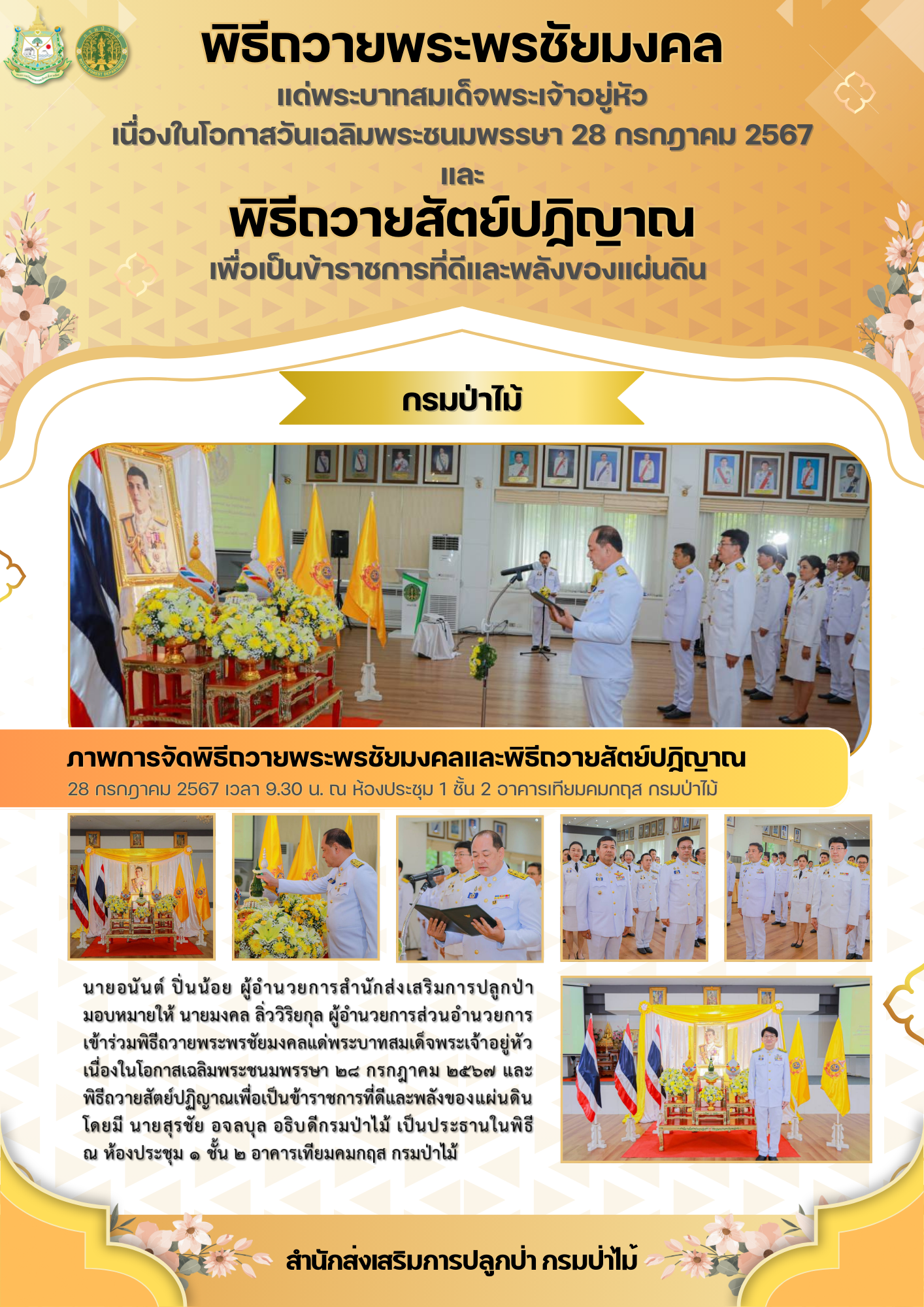 พิธีถวายพระพรชัยมงคล แด่พระบาทสมเด็จพระเจ้าอยู่หัว เนื่องในโอกาสวันเฉลิมพระชนมพรรษา 28 กรกฎาคม 2567 และ พิธีถวายสัตย์ปฎิญาณเพื่อเป็นข้าราชการที่ดีและพลังของแผ่นดิน