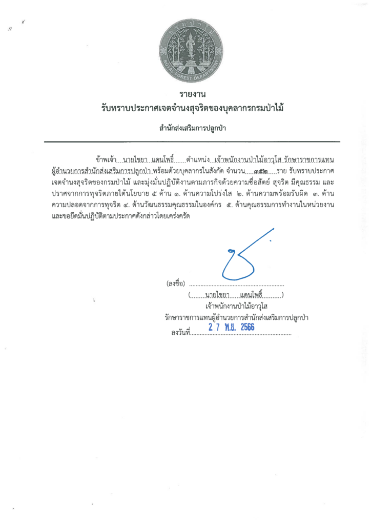 รายงานรับทราบประกาศเจตจำนงสุจริตของบุคลากรสำนักส่งเสริมการปลูกป่า กรมป่าไม้รายการนี้ถูกเผยแพร่ใน แผนที่ on 28 พฤศจิกายน 2023 by aofks รายงานรับทราบประกาศเจตจำนงสุจริตของบุคลากรสำนักส่งเสริมการปลูกป่า กรมป่าไม้
