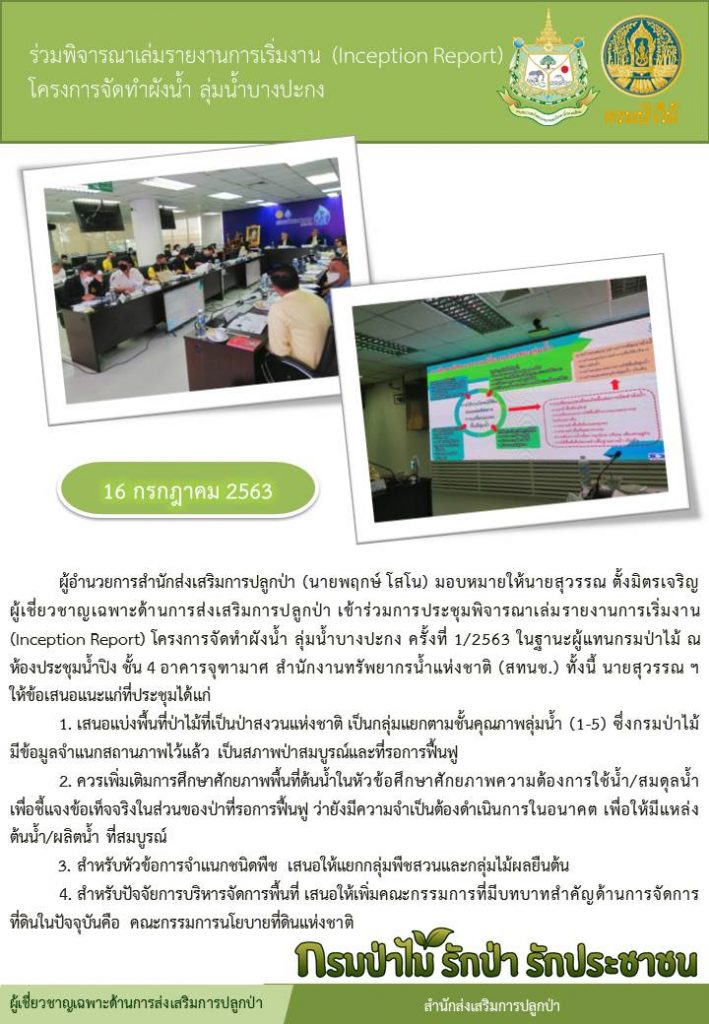 ร่วมพิจารณาเล่มรายงานการเริ่มงาน (Inception Report) โครงการจัดทำผังน้ำ ลุ่มน้ำบางปะกง