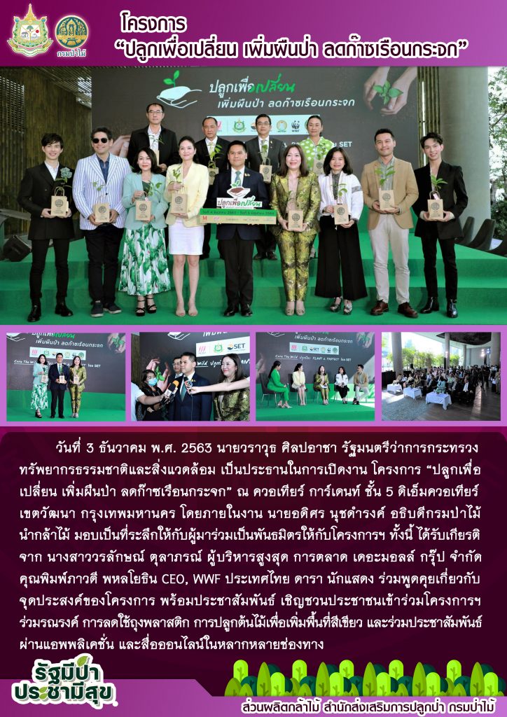 โครงการ “ปลูกเพื่อเปลี่ยน เพิ่มผืนป่า ลดก๊าซเรือนกระจก”รายการนี้ถูกเผยแพร่ใน ข่าวกิจกรรม ข่าวสารสำนัก on 8 ธันวาคม 2020 by nuttapong