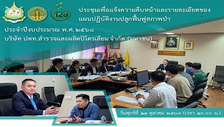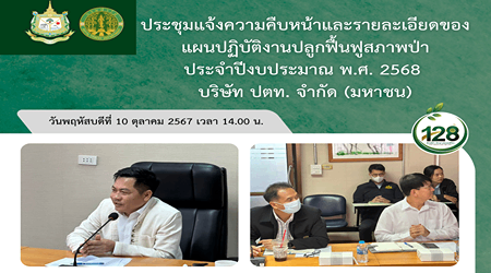 ประชุมเพื่อแจ้งความคืบหน้าและรายละเอียดของแผนปฏิบัติงานปลูกฟื้นฟูสภาพป่า ประจำปีงบประมาณ พ.ศ.๒๕๖๘ บริษัท ปตท.สำรวจและผลิตปิโตรเลียม จำกัด(มหาชน)รายการนี้ถูกเผยแพร่ใน ข่าวสารสำนัก on 15 ตุลาคม 2024 by panlop