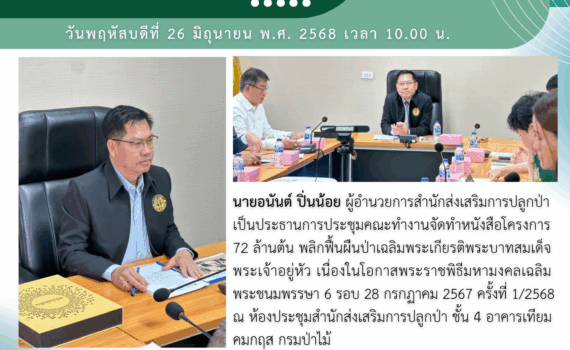 ประชุมคณะทำงานจัดทำหนังสือ โครงการ ๗๒ ล้านต้น พลิกฟื้นผืนป่าเฉลิมพระเกียรติพระบาทสมเด็จพระเจ้าอยู่หัว เนื่องในโอกาสพระราชพิธีมหามงคลเฉลิมพระชนมพรรษา ๖ รอบ ๒๘ กรกฏาคม ...รายการนี้ถูกเผยแพร่ใน ข่าวสารสำนัก on 26 มิถุนายน 2025 by panlop