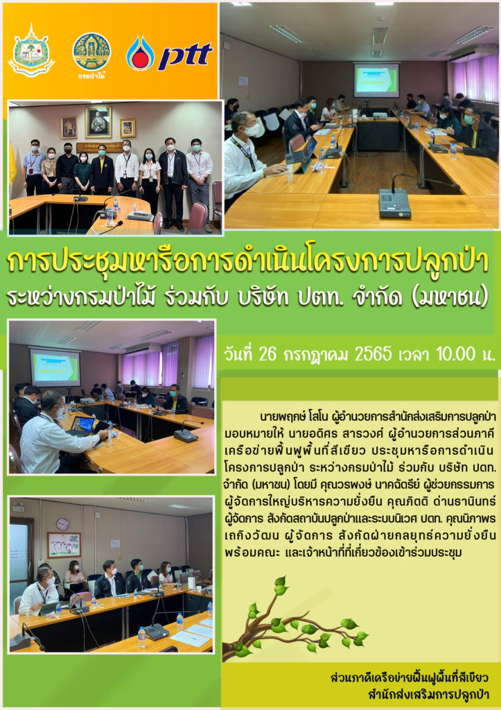 การประชุมหารือการดำเนินโครงการปลูกป่า ระหว่างกรมป่าไม้ ร่วมกับ บริษัท ปตท. จำกัด (มหาชน)26 กรกฎาคม 2022 ใน ไม่มีหมวดหมู่ by sodsai (updated 133 days ago)